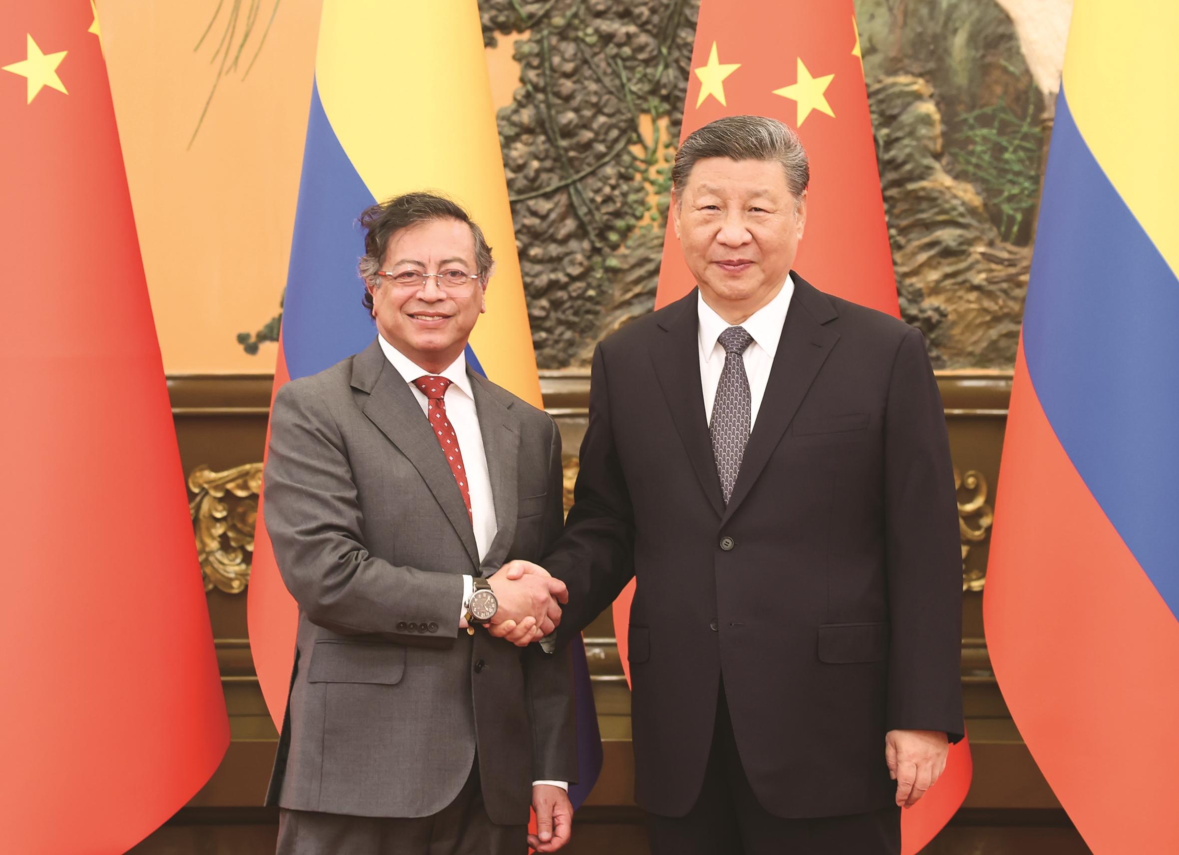 5月14日上午,国家主席习近平在北京人民大会堂会见来华出席中拉论坛第四届部长级会议的哥伦比亚总统佩特罗。 新华社记者 黄敬文 摄