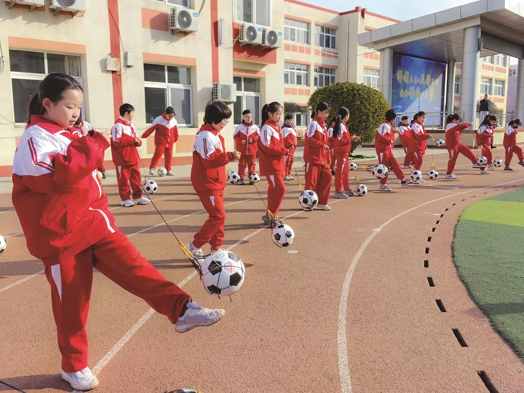 连日来,路北区祥富小学作为全国足球特色学校,一直努力把足球文化和体质教育紧密结合,通过课程创新展现“运动赋能成长”。学校师生全员参与大课间活动,开发了趣味足球体能训练、“无人机足球”对抗赛、橡筋飞机模型等特色课间活动,让孩子们在绿茵场上感受运动的魅力,努力培养出既有运动特长又有团队精神的新时代少年。图为学生们在课间练习足球。 本报记者 王欢 通讯员 邓乐凌 摄