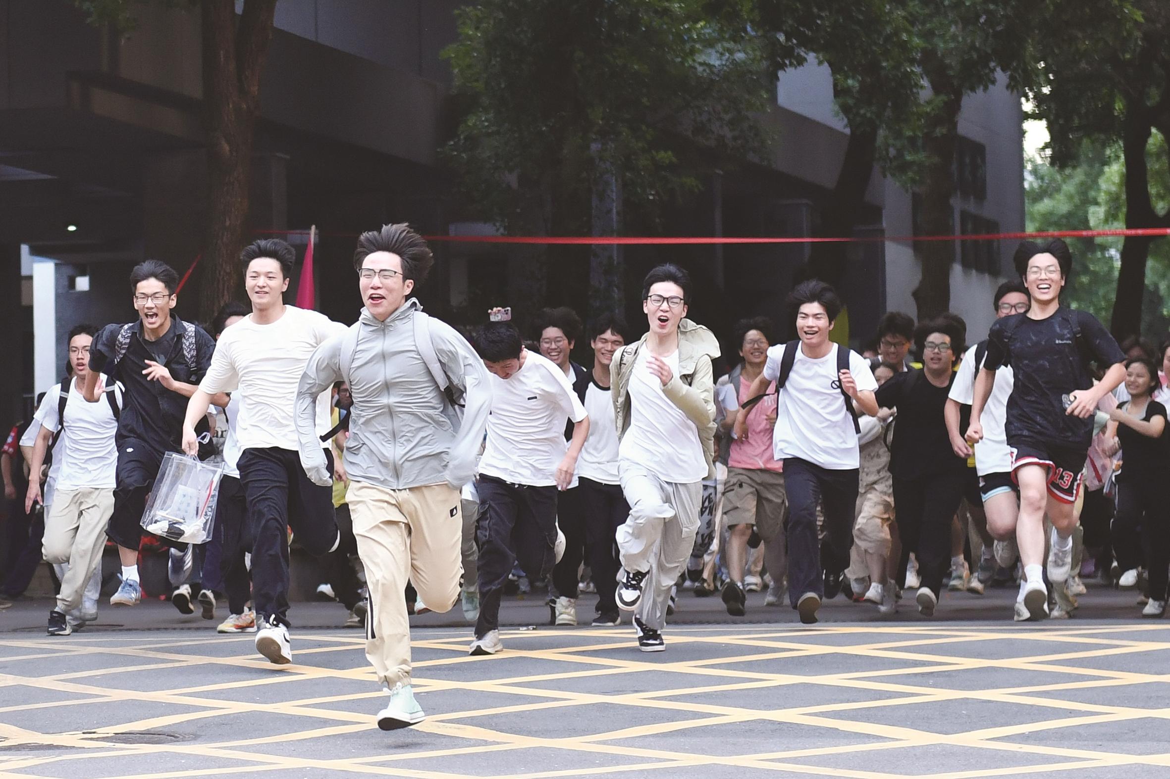6月9日,在湖南省长沙市天心区长郡中学考点,考生考试结束后跑出考场。