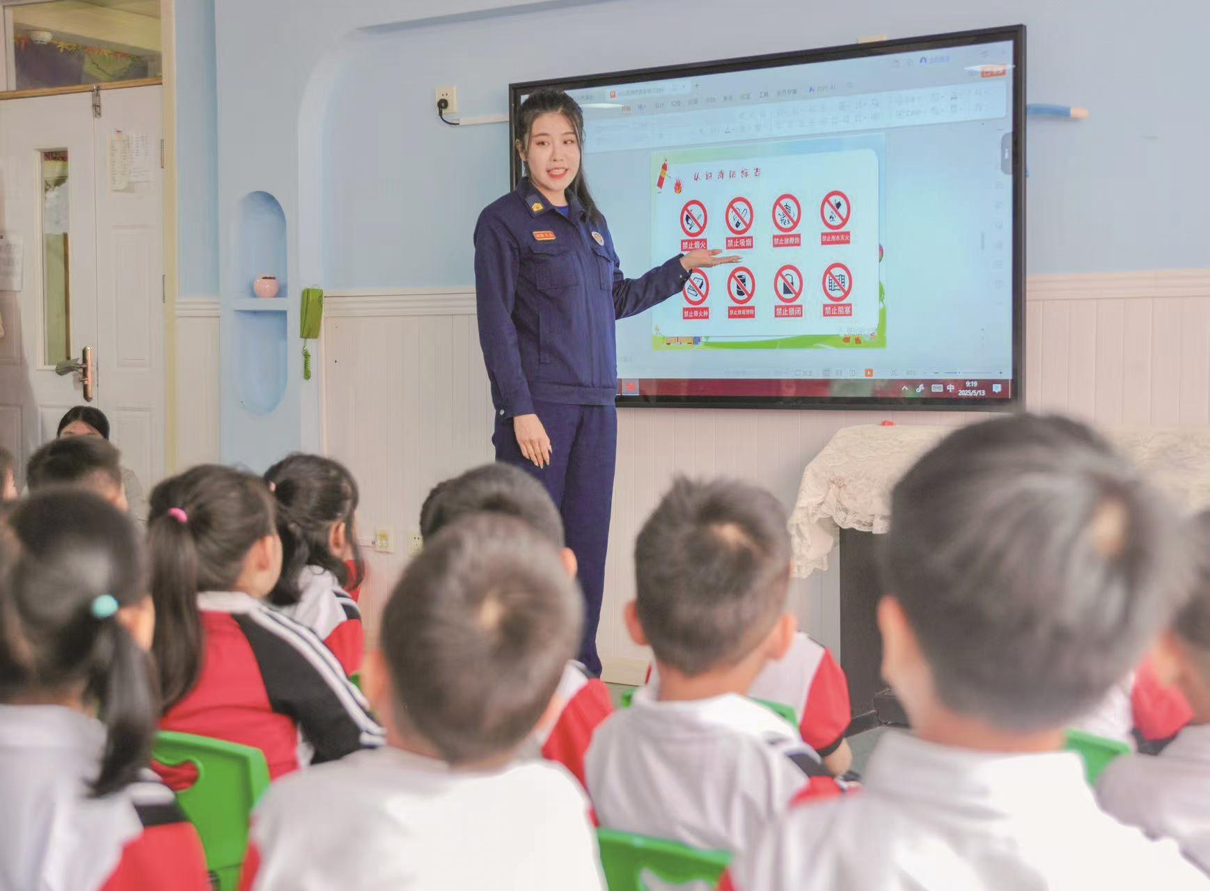 近日,路北区钓鱼台街道绿锦园社区联合路北区消防救援大队在耕心幼儿园开展消防宣讲进校园活动。