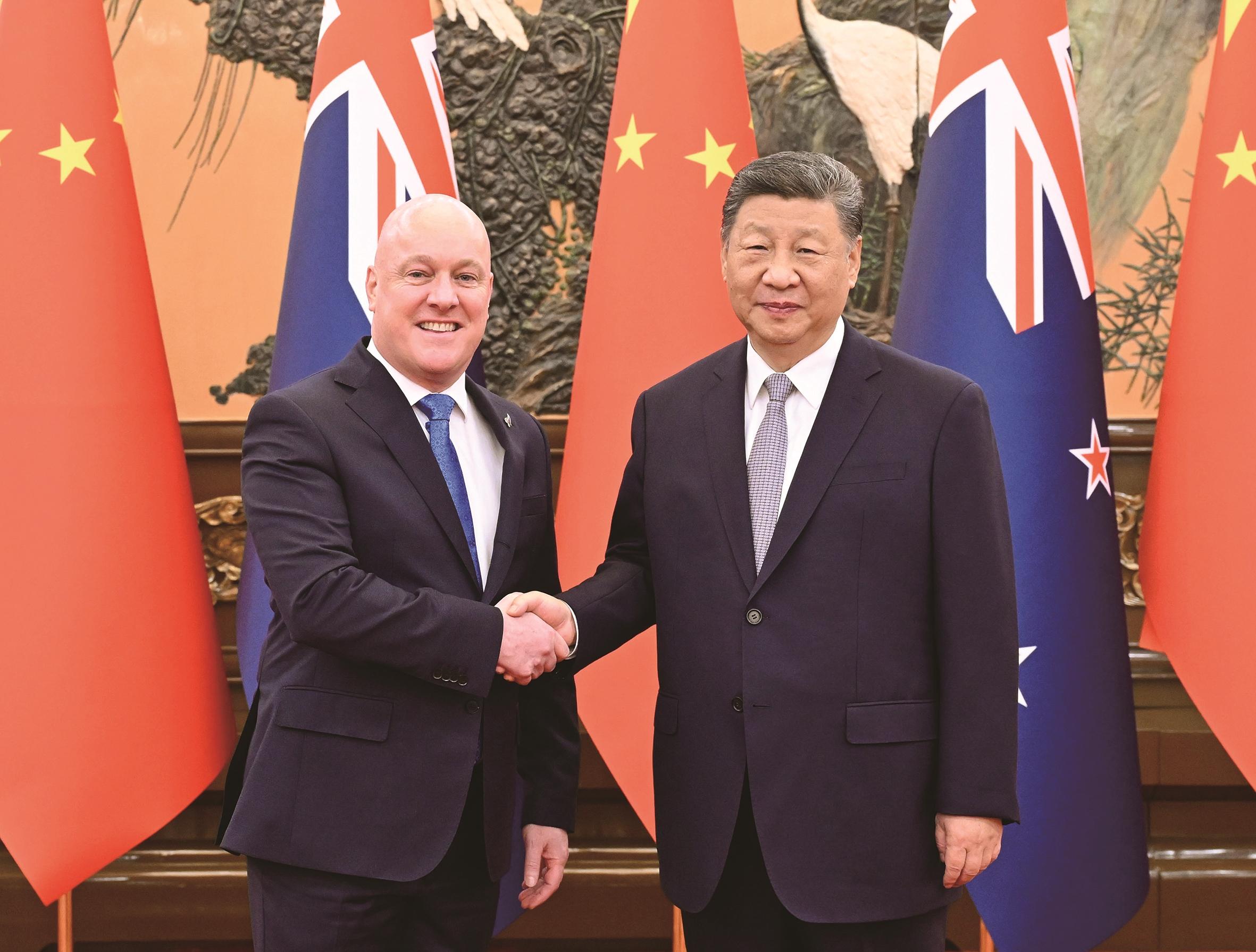 6月20日上午,国家主席习近平在北京人民大会堂会见来华进行正式访问的新西兰总理拉克森。