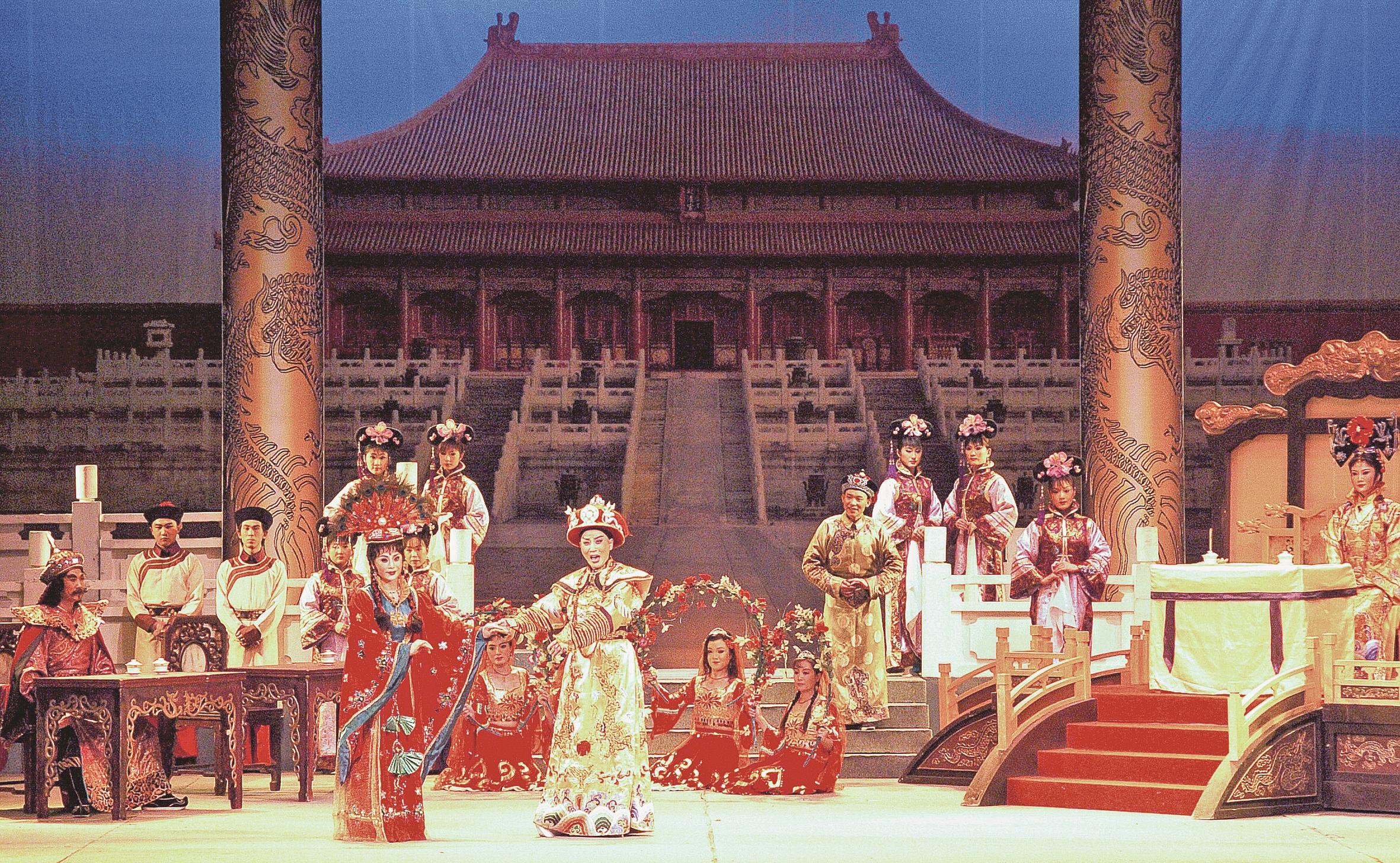 舞台视觉同样震撼。当灯光亮起,舞台色彩在围场的黄、宝月楼的红、御花园的绿之间流转。“那带有异域风情的美女们伴随着音乐华丽登场”,一位剧评人曾如此描述开场的视觉冲击。