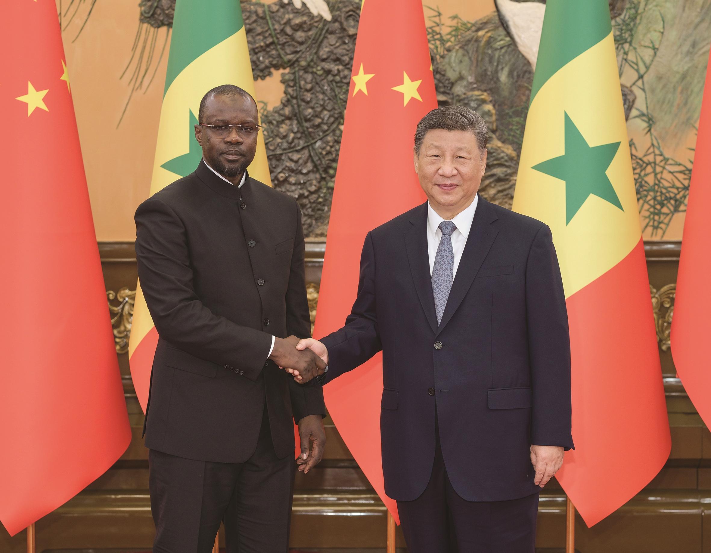 习近平指出,去年9月,我同法耶总统一道主持中非合作论坛北京峰会,引领中非关系进入共筑新时代全天候命运共同体的新阶段。中塞两国是发展振兴的同路人、好兄弟。中方愿同塞方加强团结合作,深入推进中塞全面战略合作伙伴关系,为两国人民带来更多福祉,为中非友好和全球南方合作注入更多动力。
