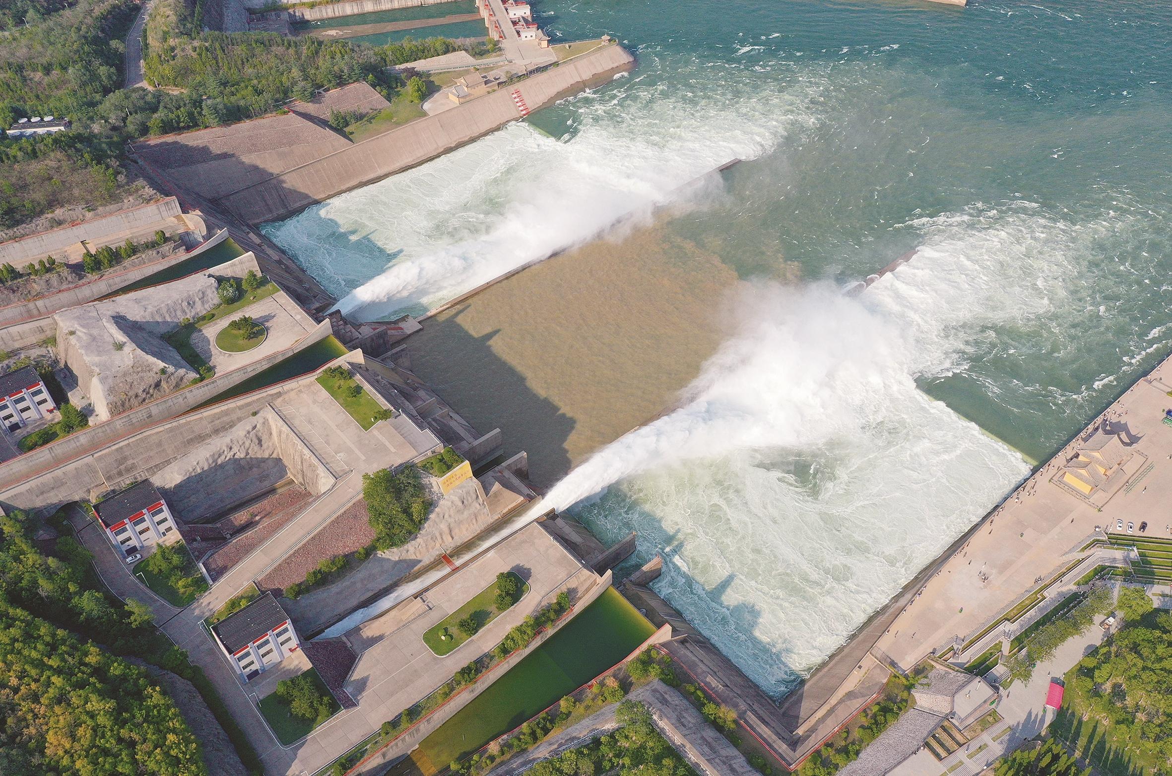 这是6月23日在河南济源拍摄的小浪底水利枢纽工程调水调沙现场(无人机照片)。