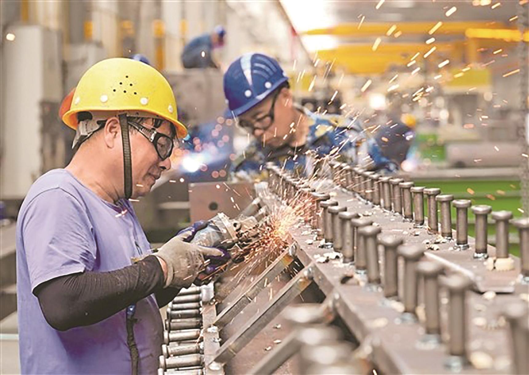6月18日,河北省唐山市芦台经济开发区一家装配式建筑企业的工人在生产车间工作。