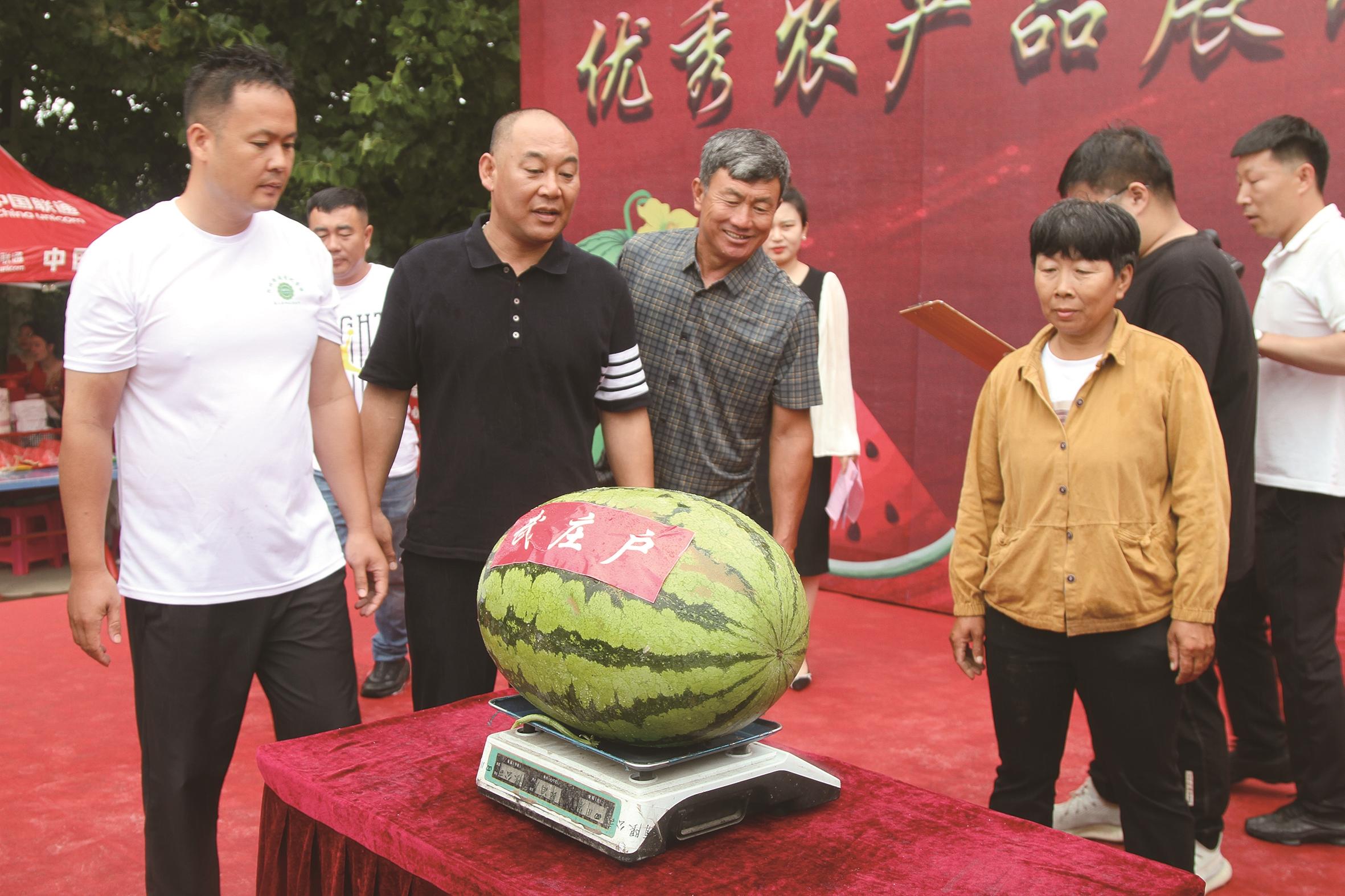 本报讯 (记者梁赞英)时下,滦南县青坨营镇6000余亩西瓜迎来丰收季,为庆祝丰收的喜悦,礼赞农民们一年来在西瓜产业上的辛勤耕耘,6月27日上午,以“红韵瓜乡·平台共富”为主题的滦南优秀农产品展示暨青坨营镇第二届西瓜文化节在该镇西水清庄村举办。活动现场共有16个品种的西瓜品牌亮相。