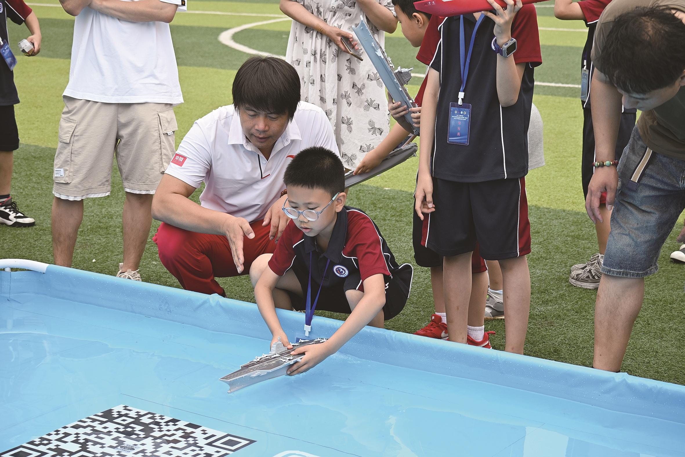 当天的赛场上,来自全省各地的优秀青少年选手们汇聚一堂,用他们的智慧和汗水,呈现了一场场精彩的航海模型和车辆模型盛宴。选手们在水池前手握自己的模型参赛,脸上的表情坚毅果敢。不一会儿,天空下起蒙蒙细雨,但他们依旧执着地守护在水池边,驾驭着自己的模型劈波斩浪、傲然前行。带领选手参加比赛的丰润区华泰道小学领队吴雪青认为,通过参加比赛,让孩子们在更广阔的空间进行展示,对培养他们的专注度、认真程度都有好处。