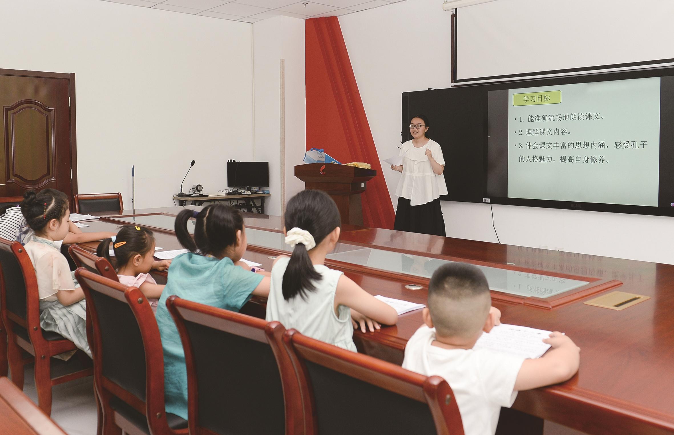 图为7月14日,大学生志愿者为辖区孩子们讲课。本报记者 杜雯拓 摄