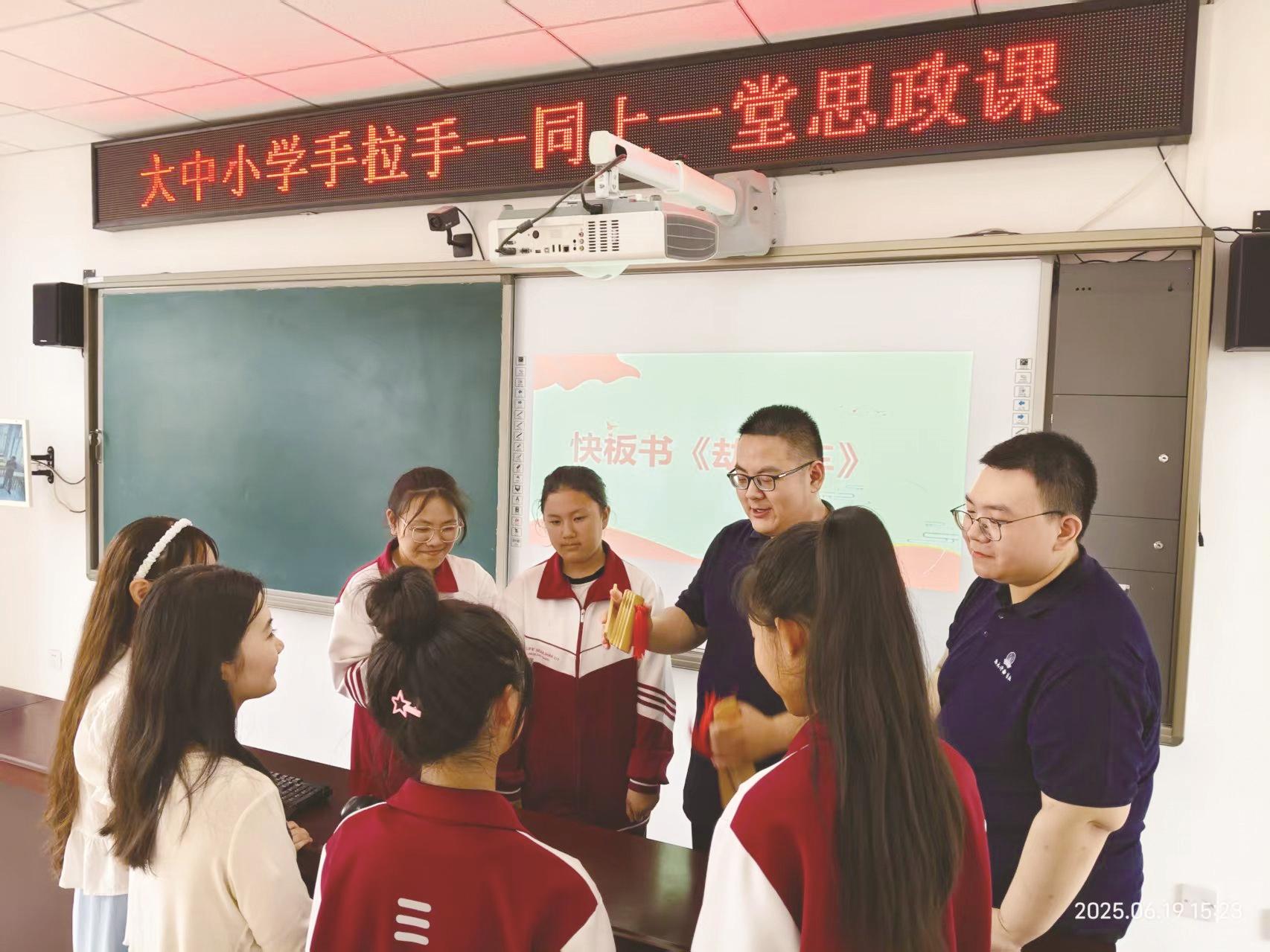 本报讯 (记者赵欣)日前,一堂生动的思政课在滦南县姚王庄镇初级中学开讲。来自河北科技学院马克思主义学院的师生为姚王庄镇初级中学的学生上了一堂别开生面的思政课。