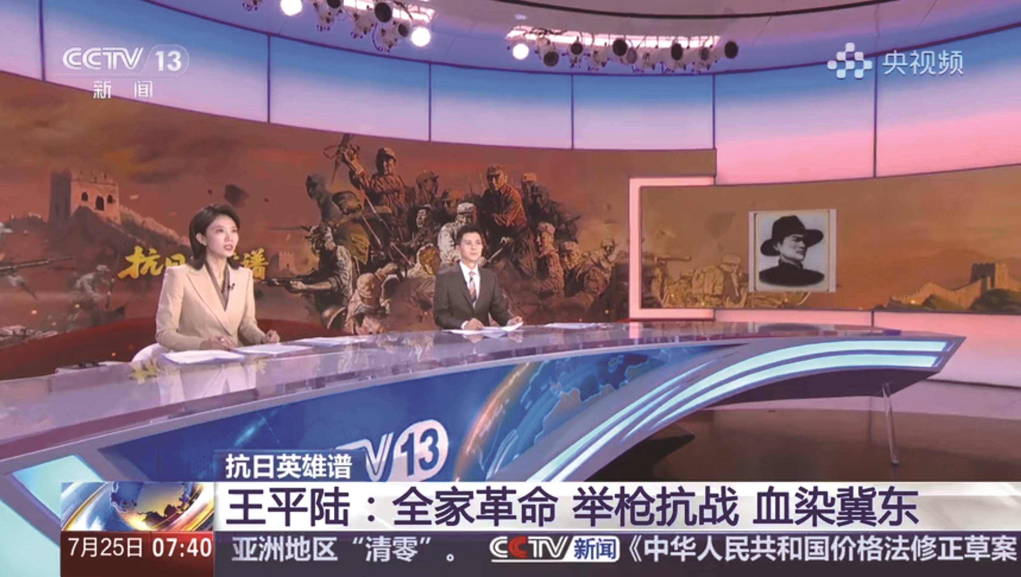 7月25日,央视新闻频道《朝闻天下》播出《抗日英雄谱 王平陆:全家革命 举枪抗战 血染冀东》,纪念打响冀东抗日游击战争第一枪的抗日英雄——王平陆,回顾这位以生命践行信仰的英雄光辉灿烂的一生,铭记那段刻骨铭心的峥嵘岁月。
