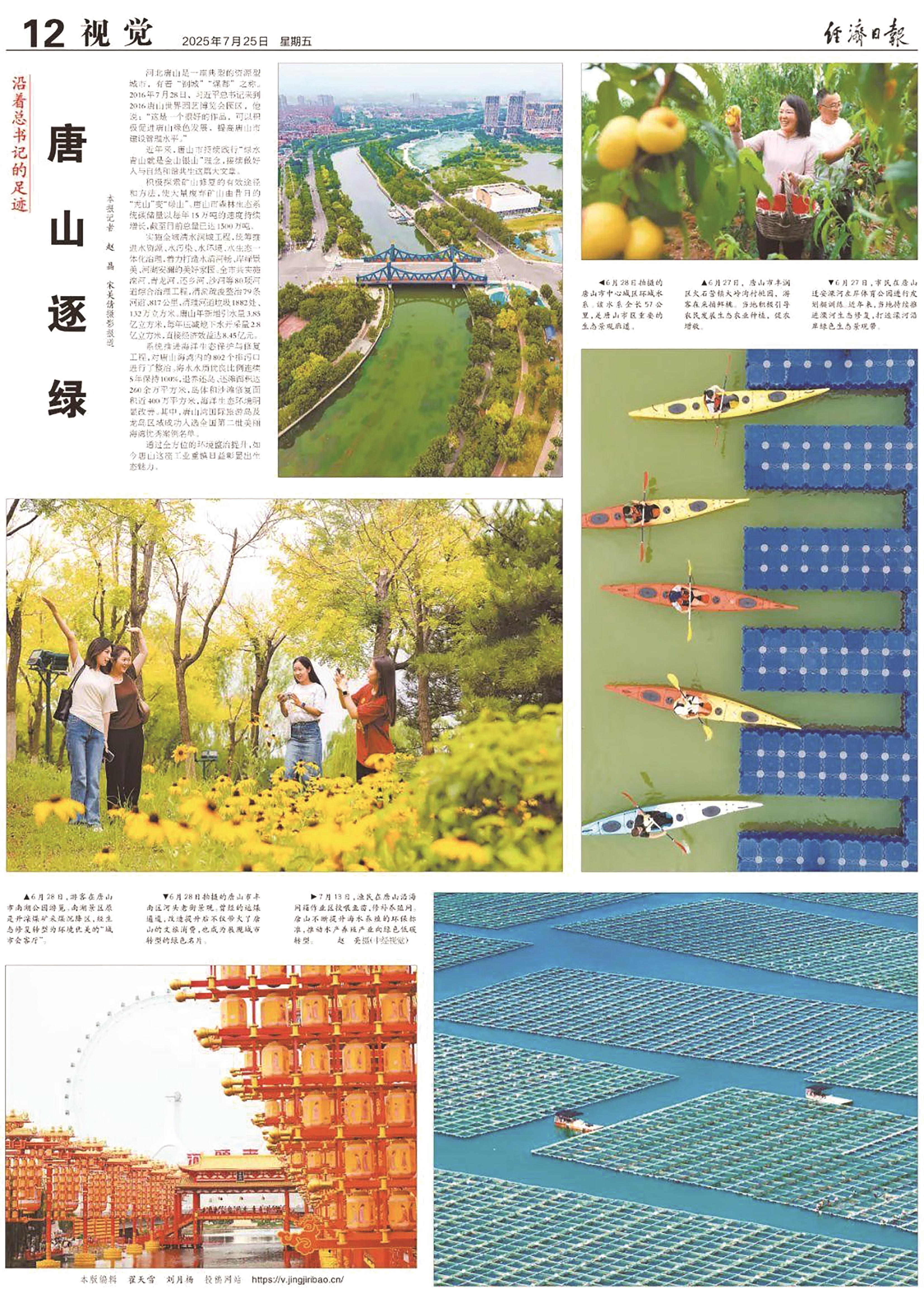 7月25日,《经济日报》12版整版刊发《沿着总书记的足迹——唐山逐绿》消息,介绍工业重镇唐山通过系统性生态修复与治理,实现从“钢城”“煤都”向绿色生态城市的蝶变。