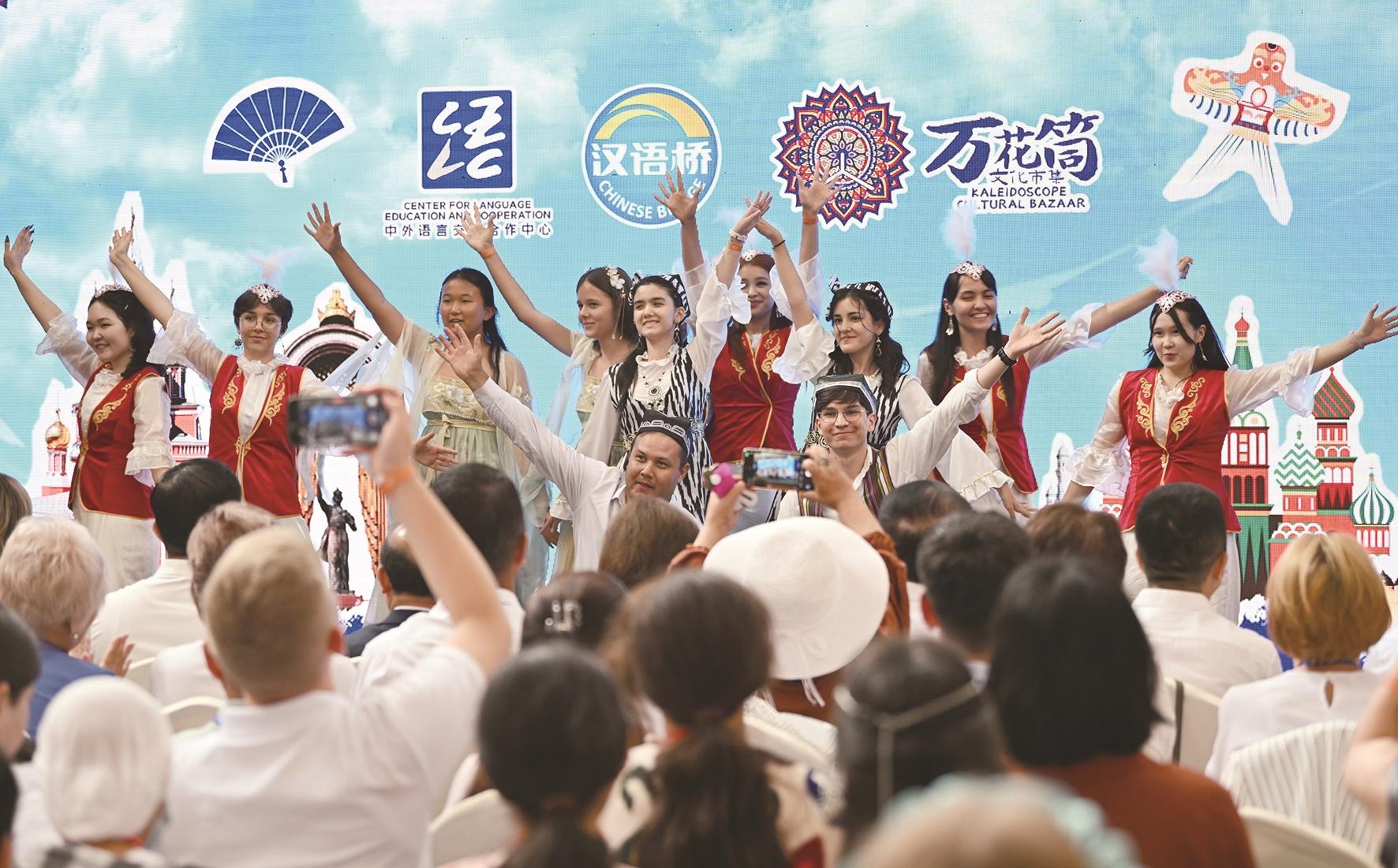 8月6日,上合国家青年学生共同表演舞蹈节目。