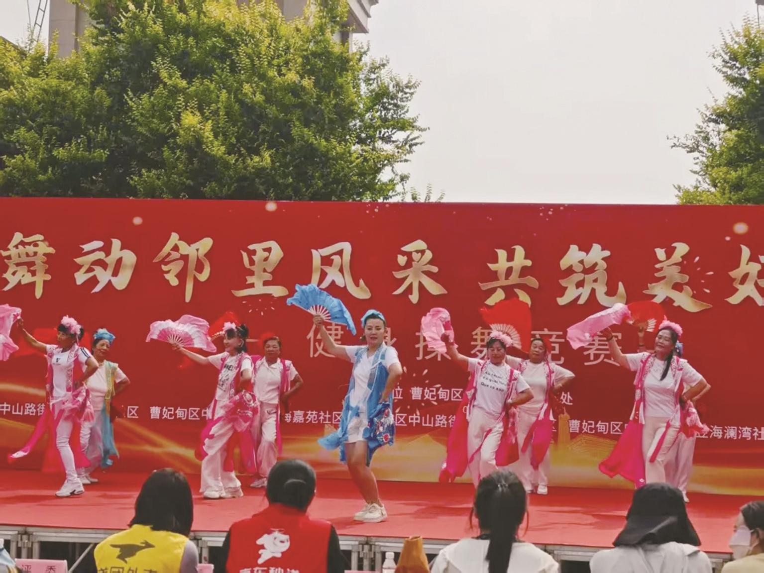 本报讯 (曹轩)为推动群众性文体活动深入开展,丰富居民群众的精神文化生活,近日,曹妃甸区中山路街道及下辖五社区组织居民开展“舞动邻里风采 共筑美好家园”健身操舞竞赛活动,共吸引10支参赛队伍、80余名健身爱好者同台竞技,现场近100名居民驻足观赛。