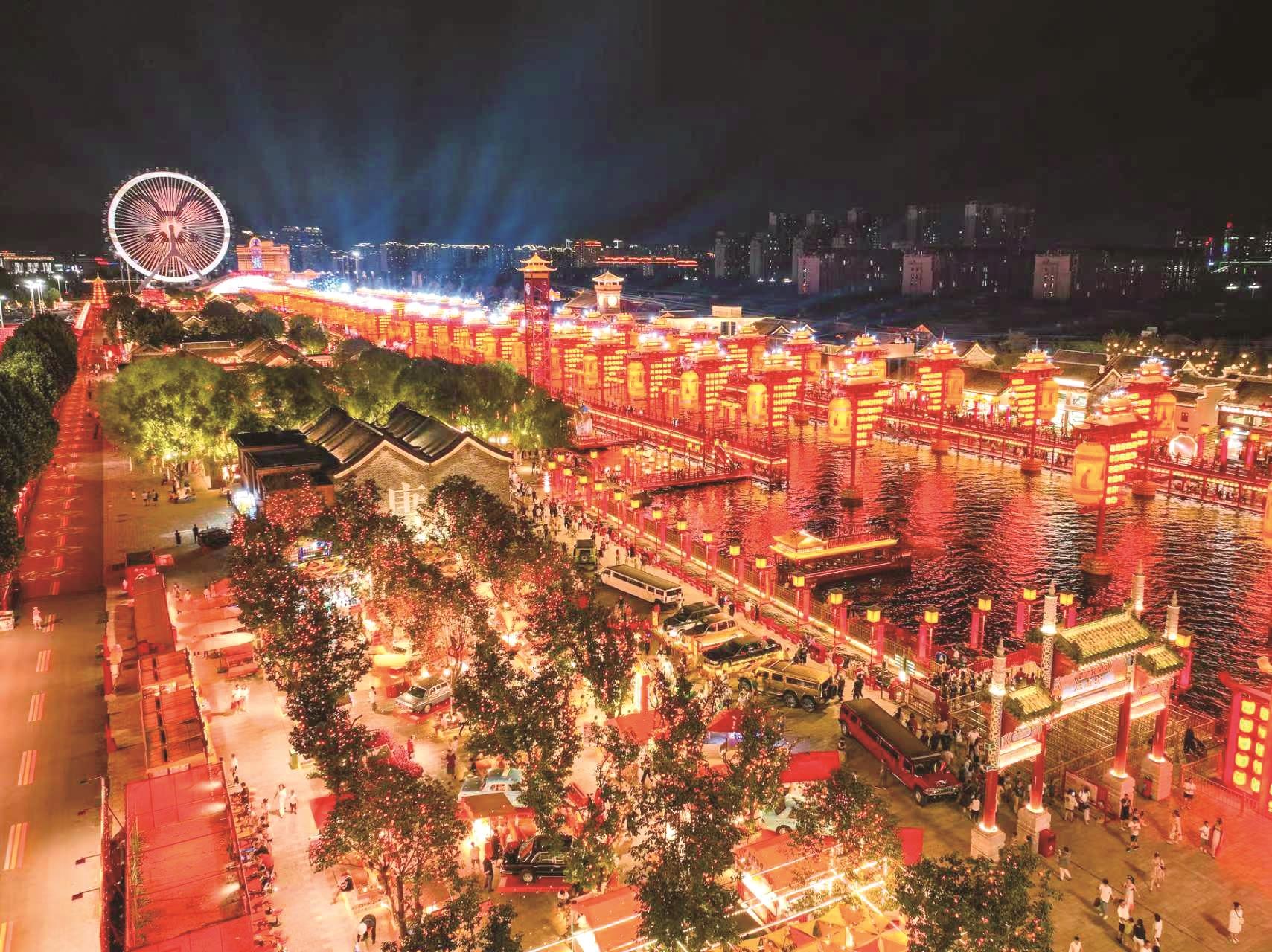 中央广播电视总台 每当夜幕降临,唐山河头老街就会变得光彩夺目,给人一种穿越到大唐盛世的感觉。这条老街,不仅承载着唐山的历史记忆,更以它那美丽奇幻的夜景吸引着无数游客前来游玩。河头老街把小桥流水江南古巷搬进唐山,青砖黛瓦配着人间烟火,随处拍摄都是大片。图为河头老街夜景,灯火辉煌。