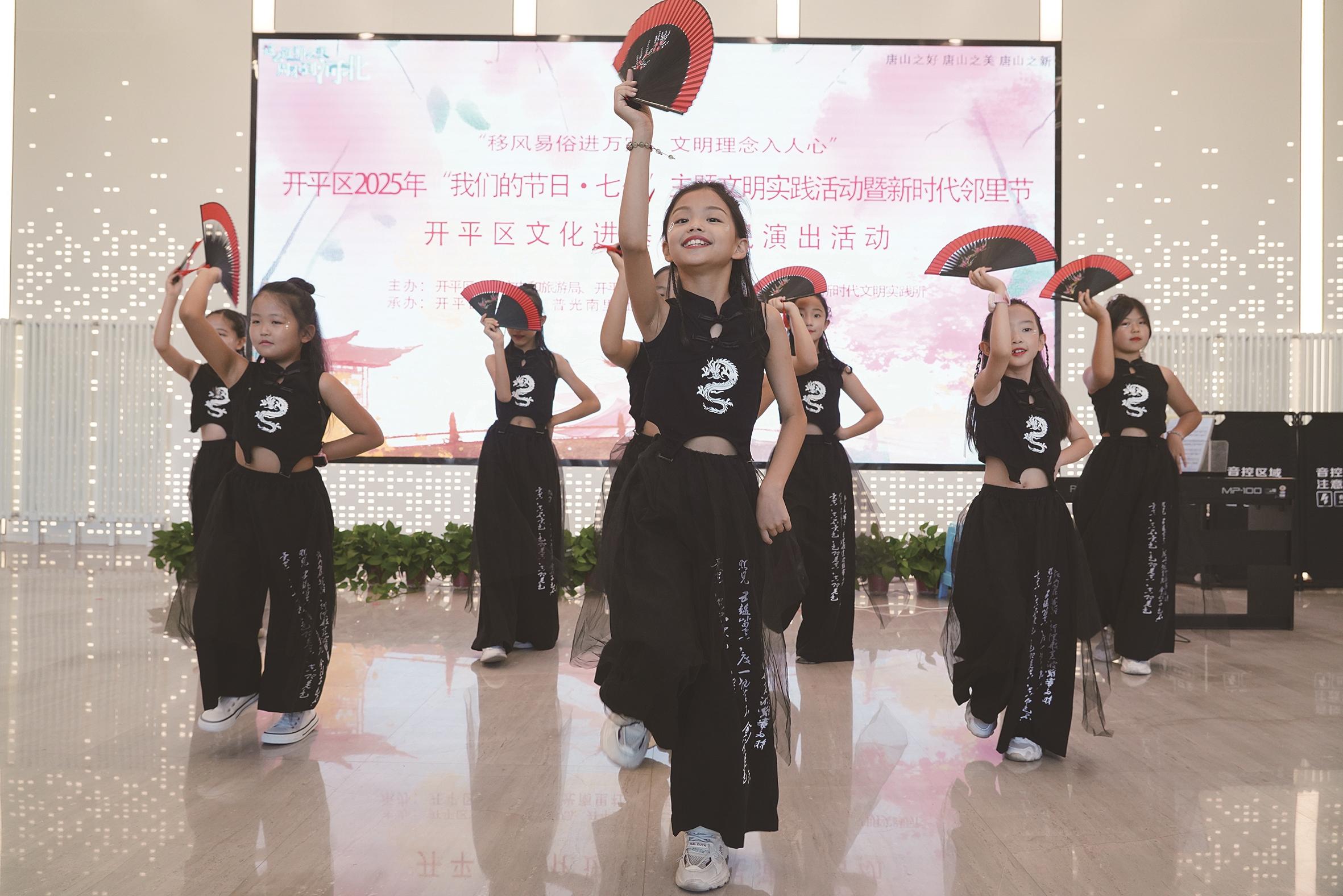 8月22日,开平区开平街道办事处在开平区文化馆组织开展“我们的节日·七夕”主题文明实践活动暨新时代邻里节文化进基层惠民演出活动。舞蹈《城里的月光》《大地》、钢琴独奏《往事难忘》《秋千》、独唱《爱在人间》等节目轮番上演,为辖区居民献上家门口的文化盛宴。