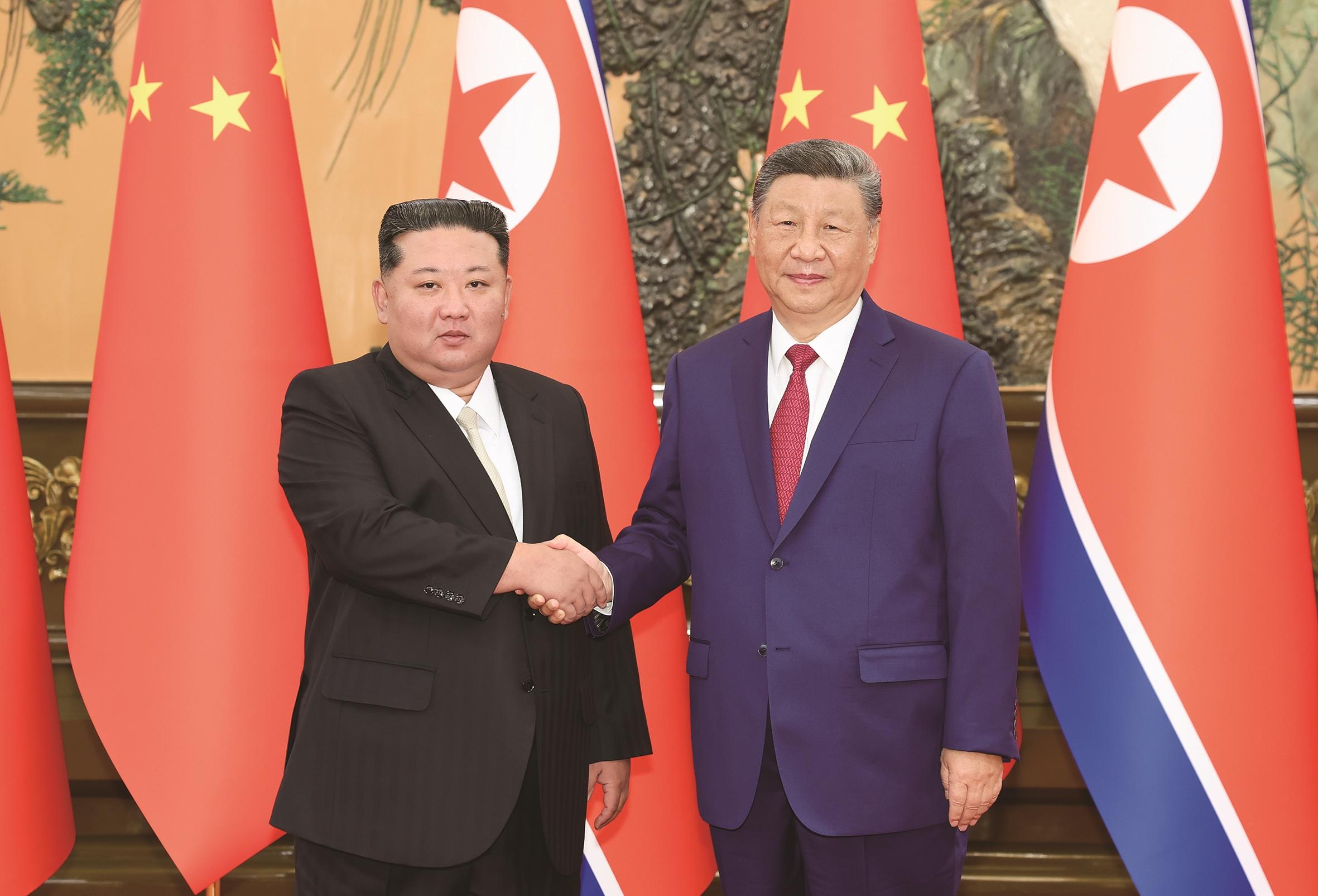 习近平指出,中朝是命运与共、守望相助的好邻居、好朋友、好同志。中朝友谊源远流长,两国都是共产党领导的社会主义国家,有着共同的理想信念和奋斗目标。金正恩总书记来华出席纪念中国人民抗日战争暨世界反法西斯战争胜利80周年活动,体现了朝方维护二战胜利成果的坚定意志,也为中朝两党两国进一步发展友好合作关系提供了重要契机。