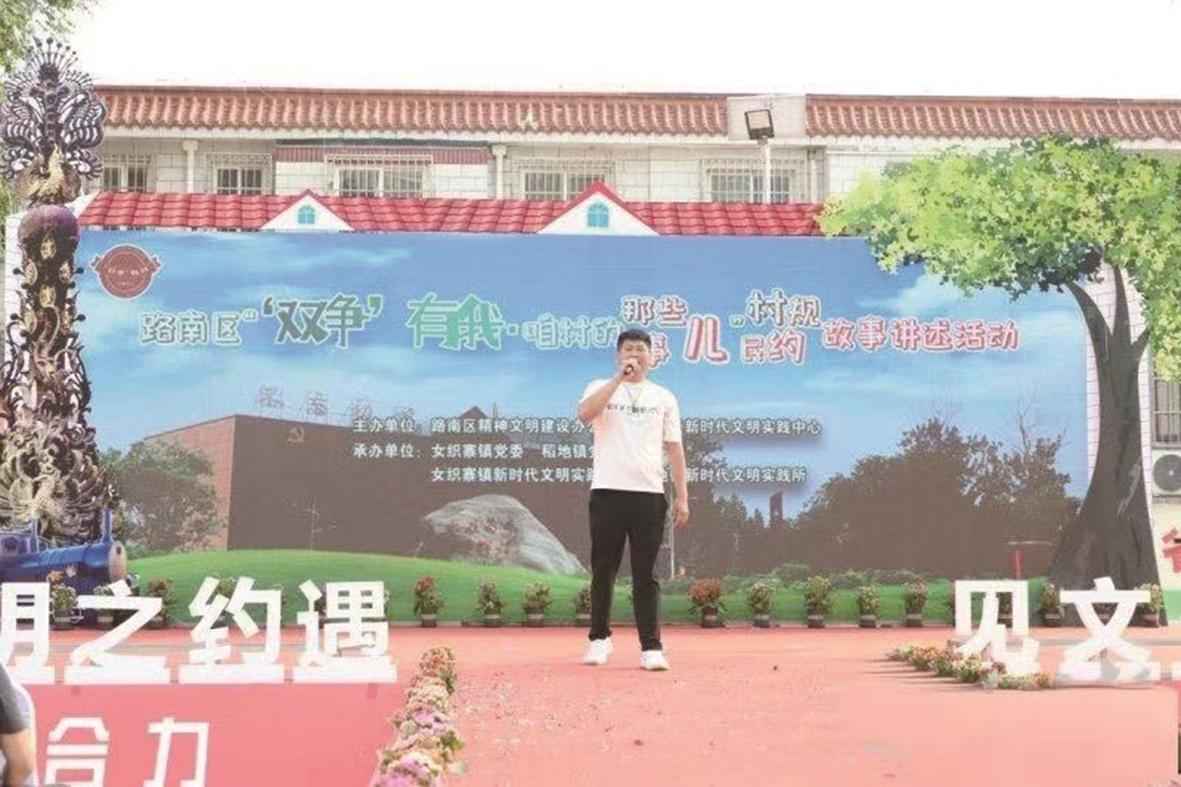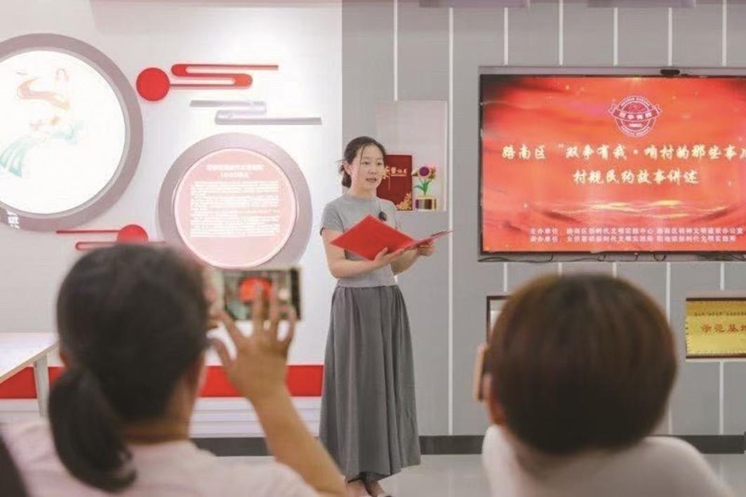 本报讯 (记者王蓉辉 通讯员徐彪、陶圆)“咱老辈人常说‘村有村规,家有家训’,村规民约就是咱付家坨村的‘传家宝’……”8月26日下午,河北省“双争有我——说说咱村那些事儿”村规民约故事讲述活动(唐山专场)在市群众艺术馆举办。作为唐山市7名讲述人之一——路南区稻地镇机关干部苏子宸以《付家坨:守好村规民约“传家宝” 走出乡村振兴新路子》为题,讲述了付家坨从邻里互助到环境整治,从诚信经营到抱团发展,打造“红缨大队”品牌,发展“一村一品”带动村集体增收致富的故事。