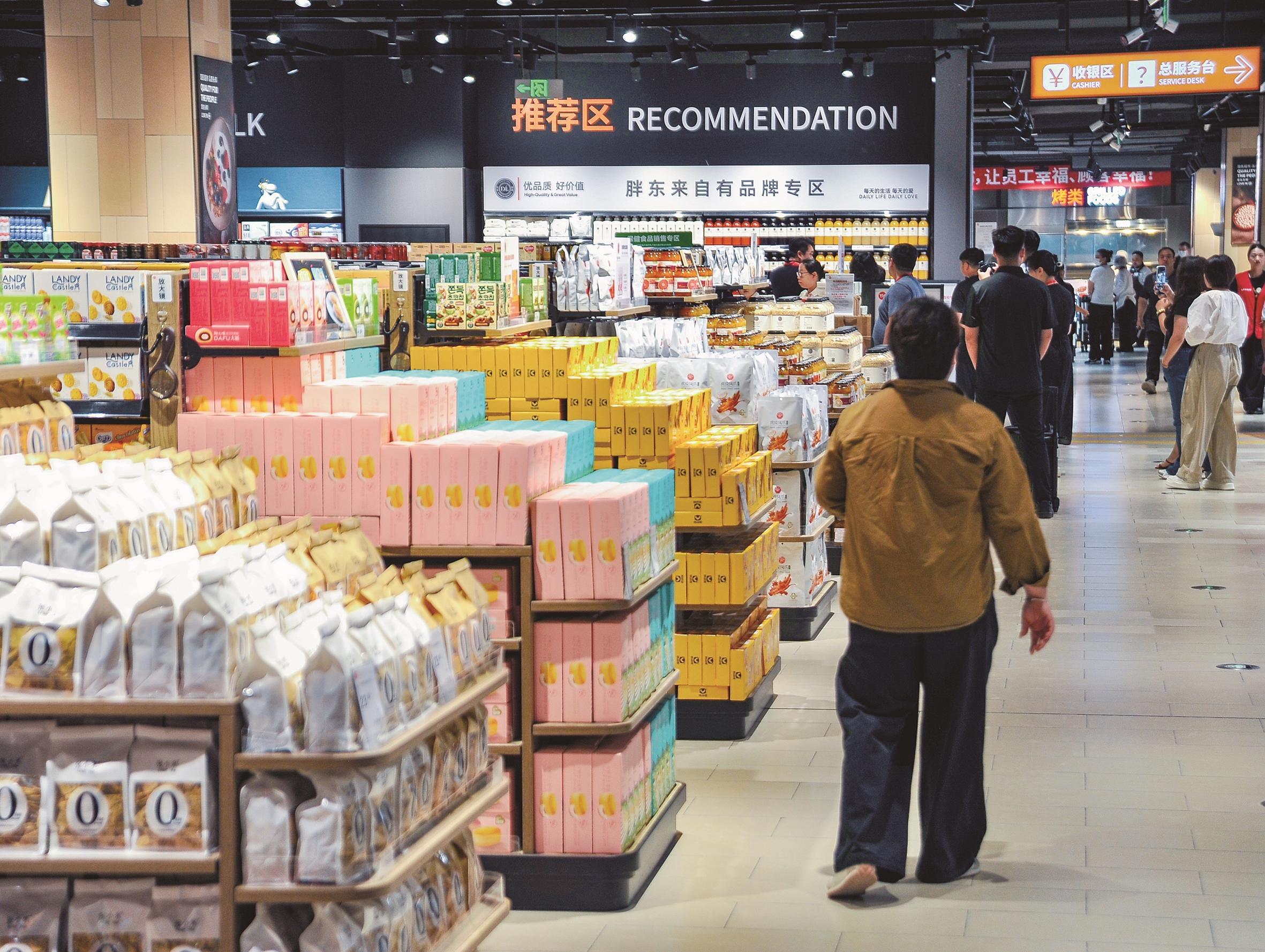 “这服务可忒周到了,方便我们老年人把商品信息看清楚。”市民张丽女士举着食品货架旁配置的放大镜称赞道。作为该店调改的一大特色,连卷袋旁配备的湿手器、家居易碎品打包台、防冻手套以及便民服务区配备的血压仪、微波炉、老花镜、宠物安置区等细节满满的服务设施,处处体现着便民服务的人文升级。