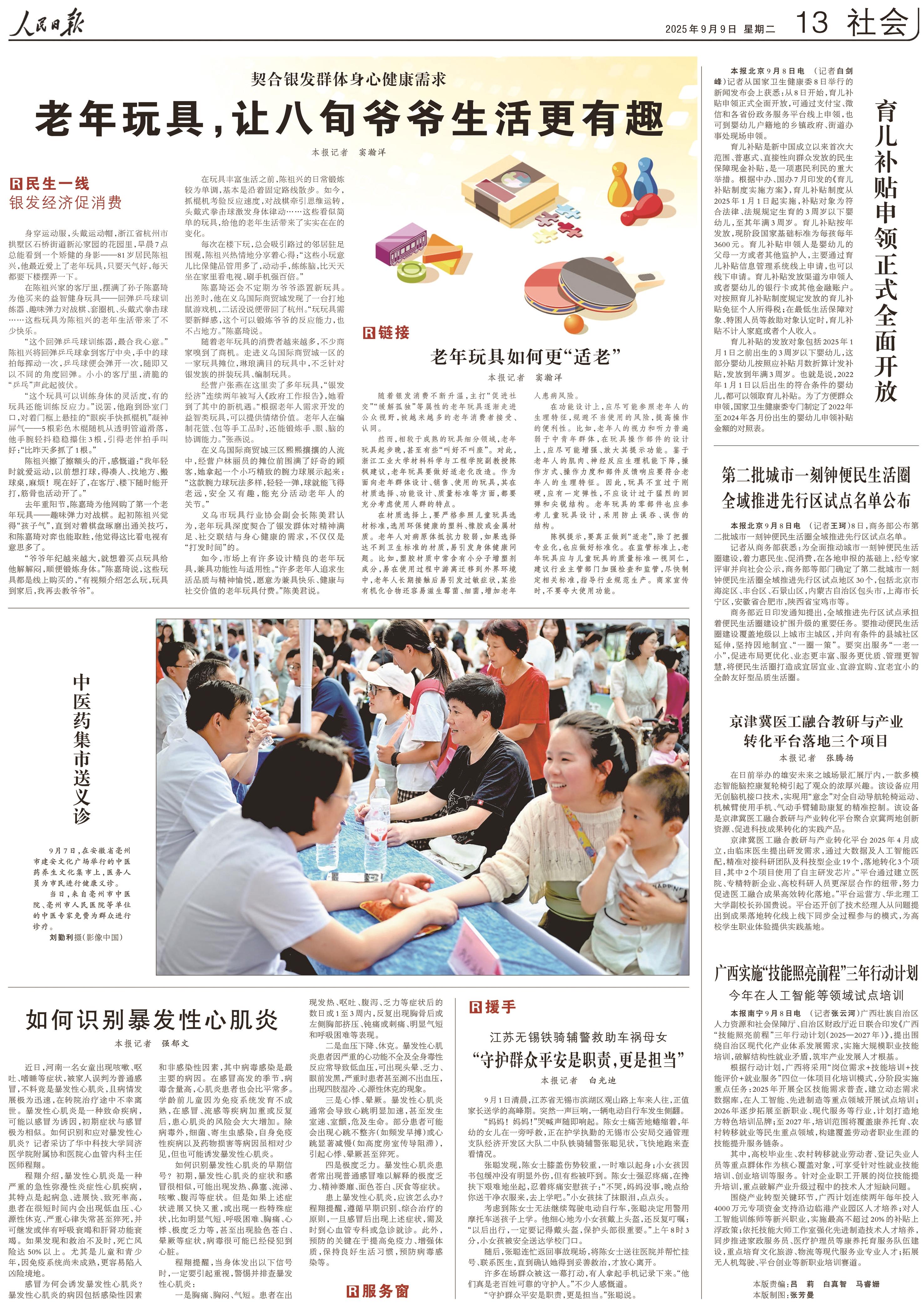 9月9日,《人民日报》13版刊发题为《京津冀医工融合教研与产业转化平台落地三个项目》消息,介绍京津冀医工融合平台推动3个项目落地,以智能脑控轮椅等创新成果,助力医疗康复产业升级与高效转化。