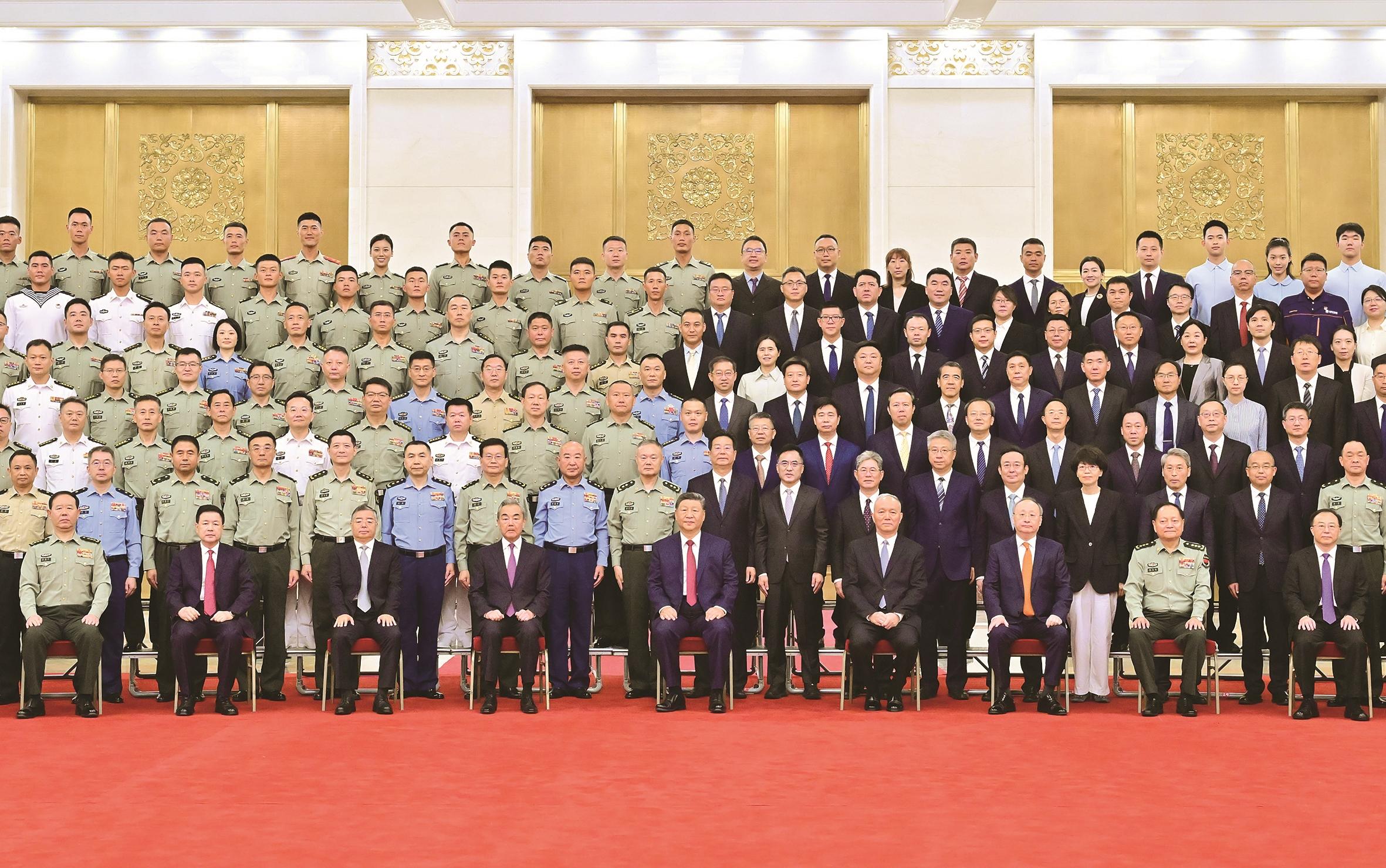 9月17日,党和国家领导人习近平、蔡奇等在北京人民大会堂接见中国人民抗日战争暨世界反法西斯战争胜利80周年纪念活动筹办工作各方面代表。新华社记者 翟健岚 摄