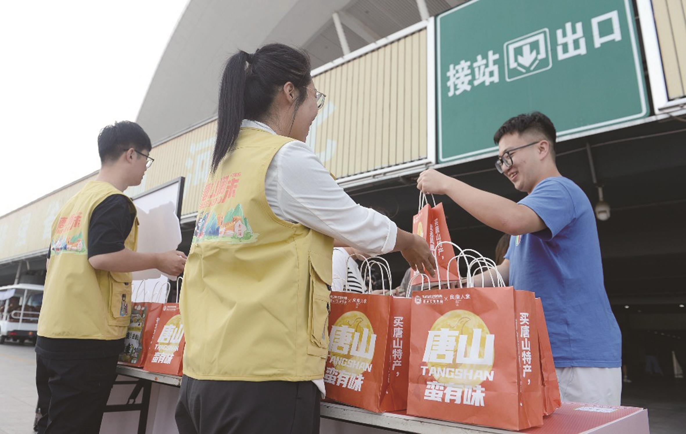 “一出唐山站就听到‘欢迎你到唐山来’的歌曲,感觉很亲切,还收到了文旅集团送的大礼包,里面的地图和特产都很实用,唐山太热情了!”10月1日,黑龙江大庆市的旅客朱宇晨和来自廊坊市的男朋友一起到唐山游玩,俩人拿着刚领到的礼包,脸上满是惊喜。像朱宇晨这样收到暖心礼品的旅客不在少数,活动现场,工作人员化身“暖心向导”,一边有序发放礼品,一边耐心为旅客解答活动相关疑问,同时开展国庆期间景区活动推介,帮助旅客更好地规划在唐行程,温馨的氛围感染着每一位到场旅客。