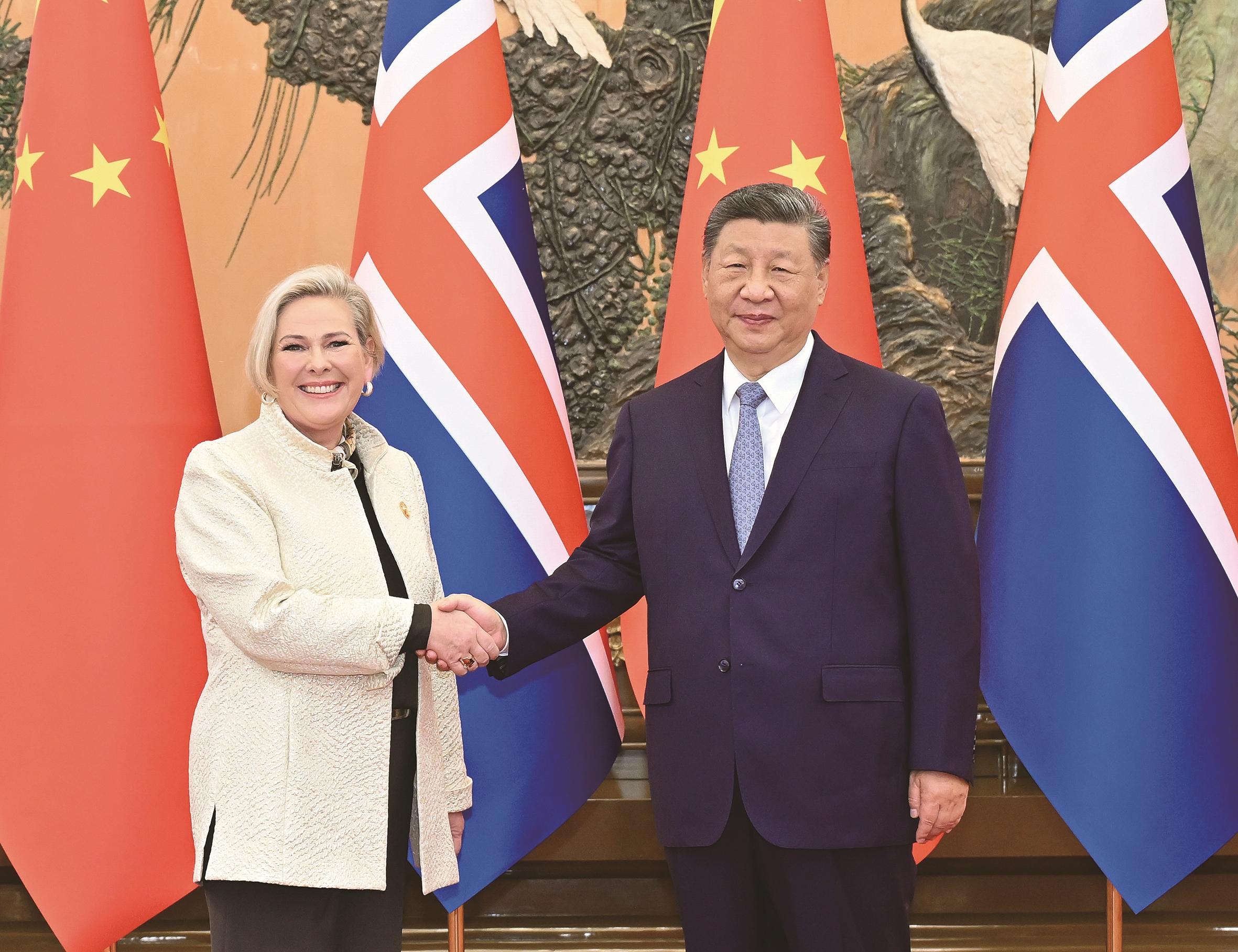 习近平强调,中冰双方要继续尊重和支持各自选择的发展道路,在涉及彼此核心利益和重大关切问题上坚定相互支持。深化经贸、地热、医疗健康等领域务实合作,共同推进绿色转型、应对气候变化。加强旅游、教育等方面人文交流,增进两国人民友谊和相互理解。中国和冰岛都支持多边主义,支持以联合国为核心的国际体系和以国际法为基础的国际秩序,双方要密切沟通和协调,共同致力于通过对话协商解决国际争端,推动构建更加公正合理的全球治理体系。要以全球妇女峰会成功召开为契机,促进全球妇女事业不断发展。