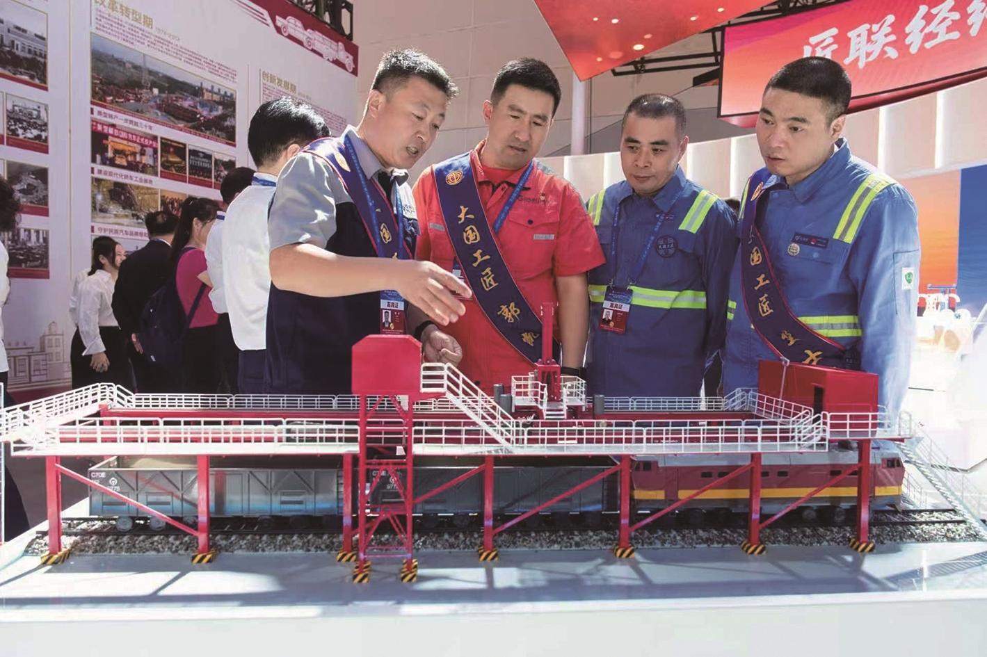 图为宋涛在向与会其他“大国工匠”介绍创新成果。 杨杨 摄