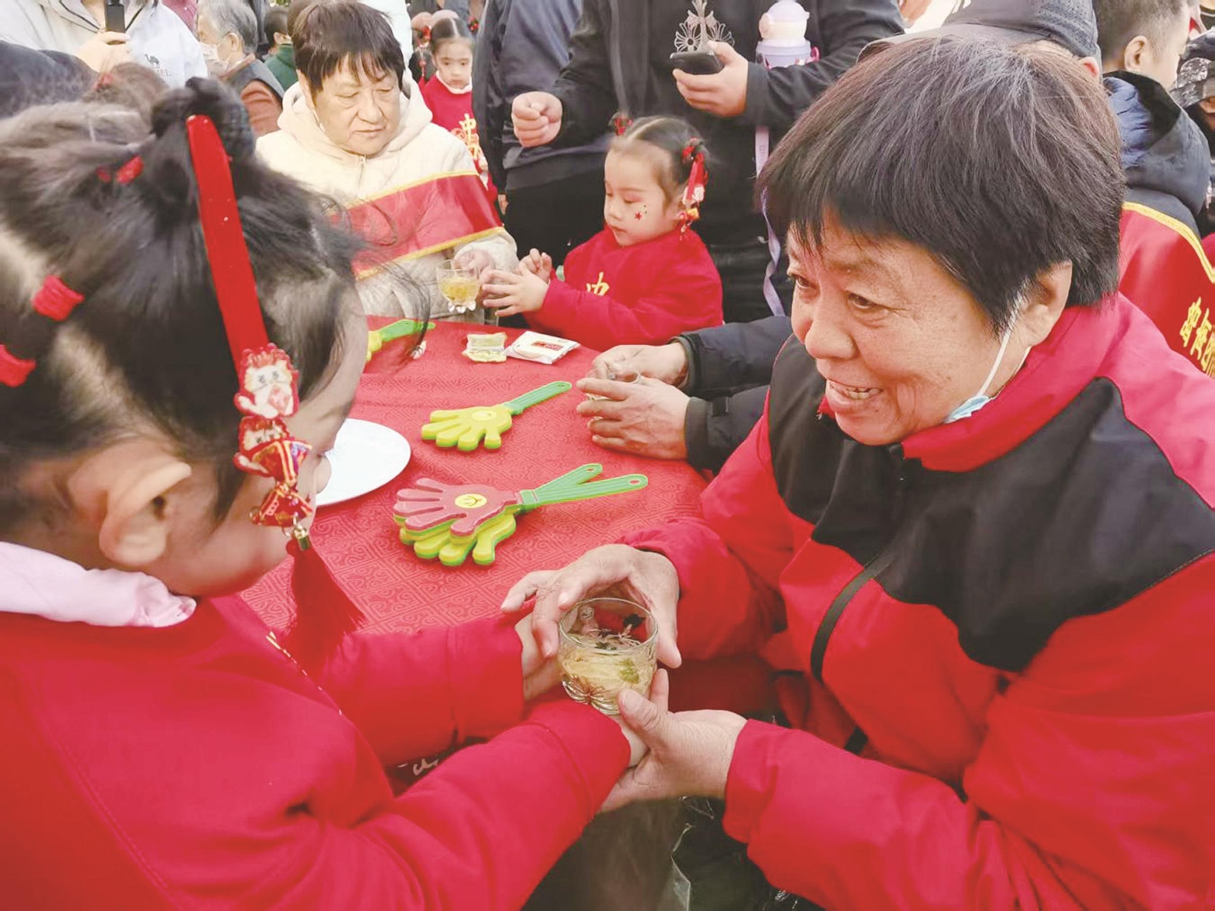 重阳欢聚开口笑——“一老一少”同台秀出最美夕阳红。活动现场精彩节目轮番上演,舞蹈《太阳出来喜洋洋》、戏曲片段《智斗》、经典影视歌曲联唱、旗袍秀《剪韵》……文明实践广场成为老人们尽情展示银龄风采的大舞台。小朋友们表演了萌翻全场的器械操《加油鸭》等节目,并向爷爷奶奶们奉上热热的菊花茶和寓意吉祥的寿桃花馍。