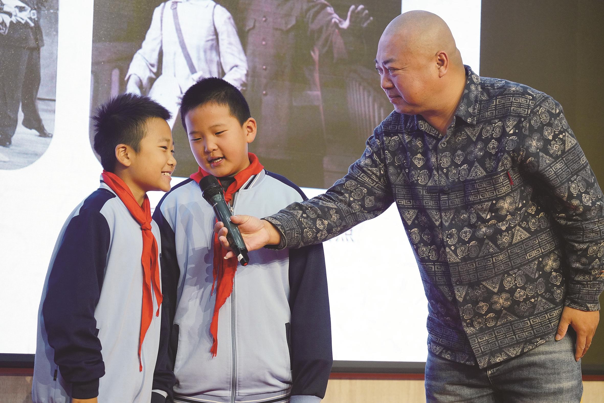 图为开平小学学生在专业演员指导下体验戏曲念白。