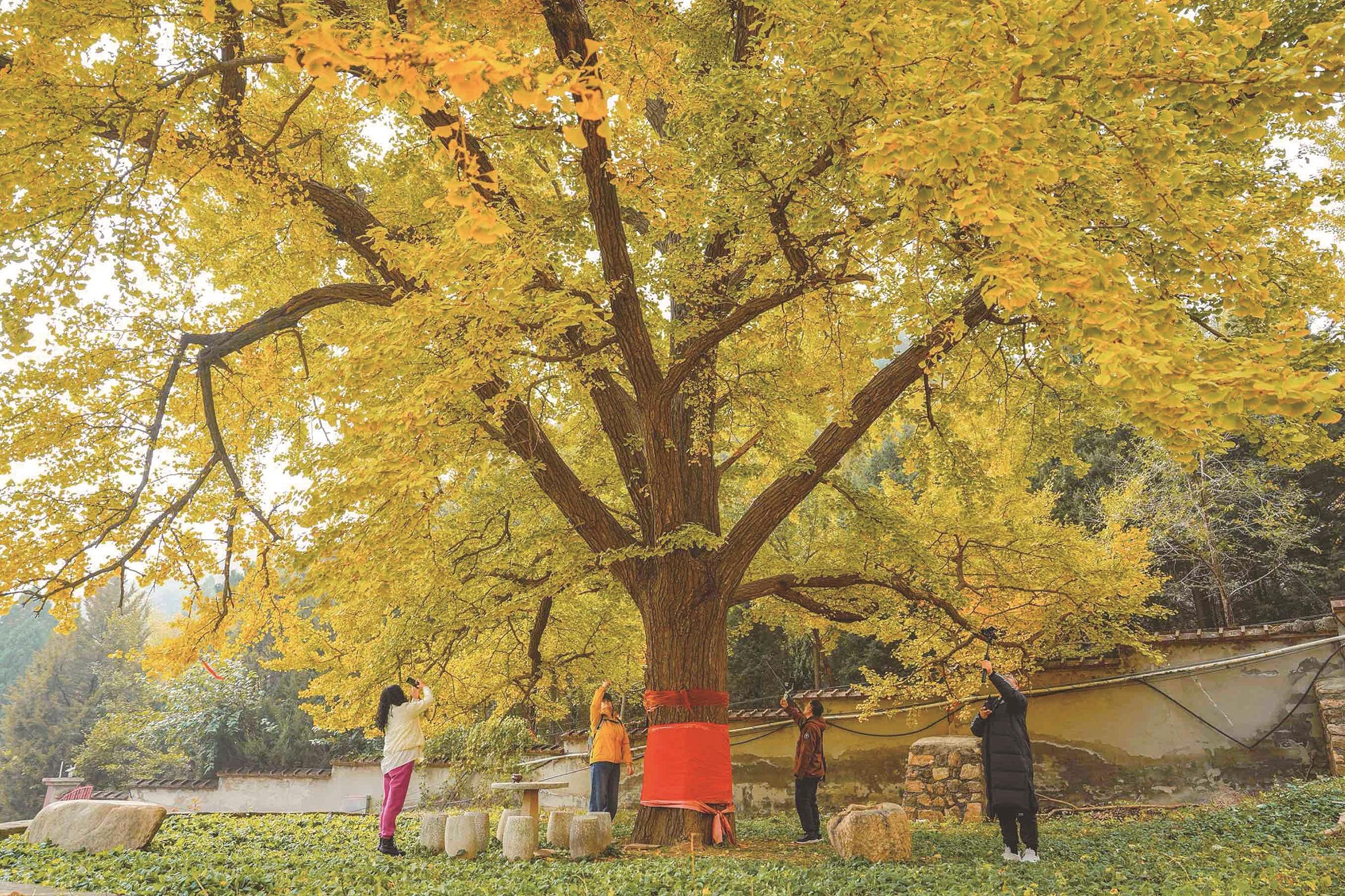 图为游客在银杏树下拍照。本报记者 徐慧 摄