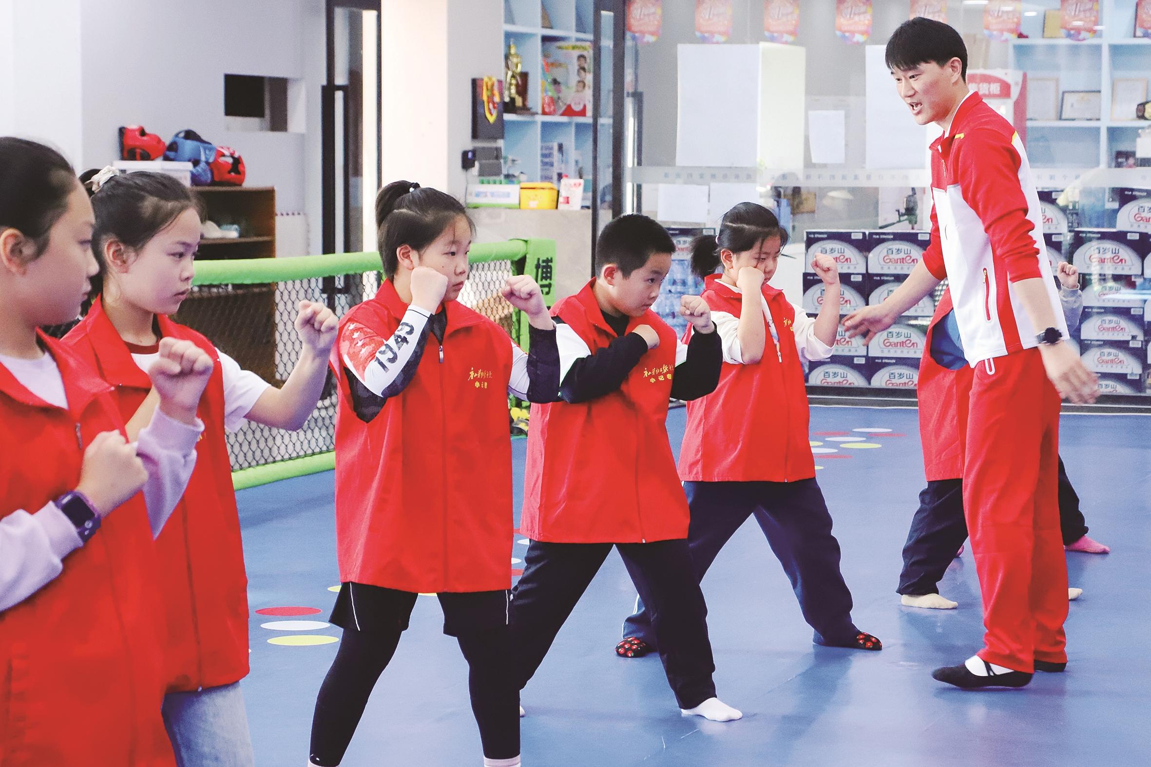 本报讯 (记者赵欣)?“站姿要稳,出拳要快!”?近日,唐山博天下散打泰拳俱乐部的训练场内,呐喊声与拳脚破风声交织。来自唐山劳动日报社的20余名小记者在此体验散打运动的独特魅力,通过一招一式解锁“勇敢与坚持”的成长密码。