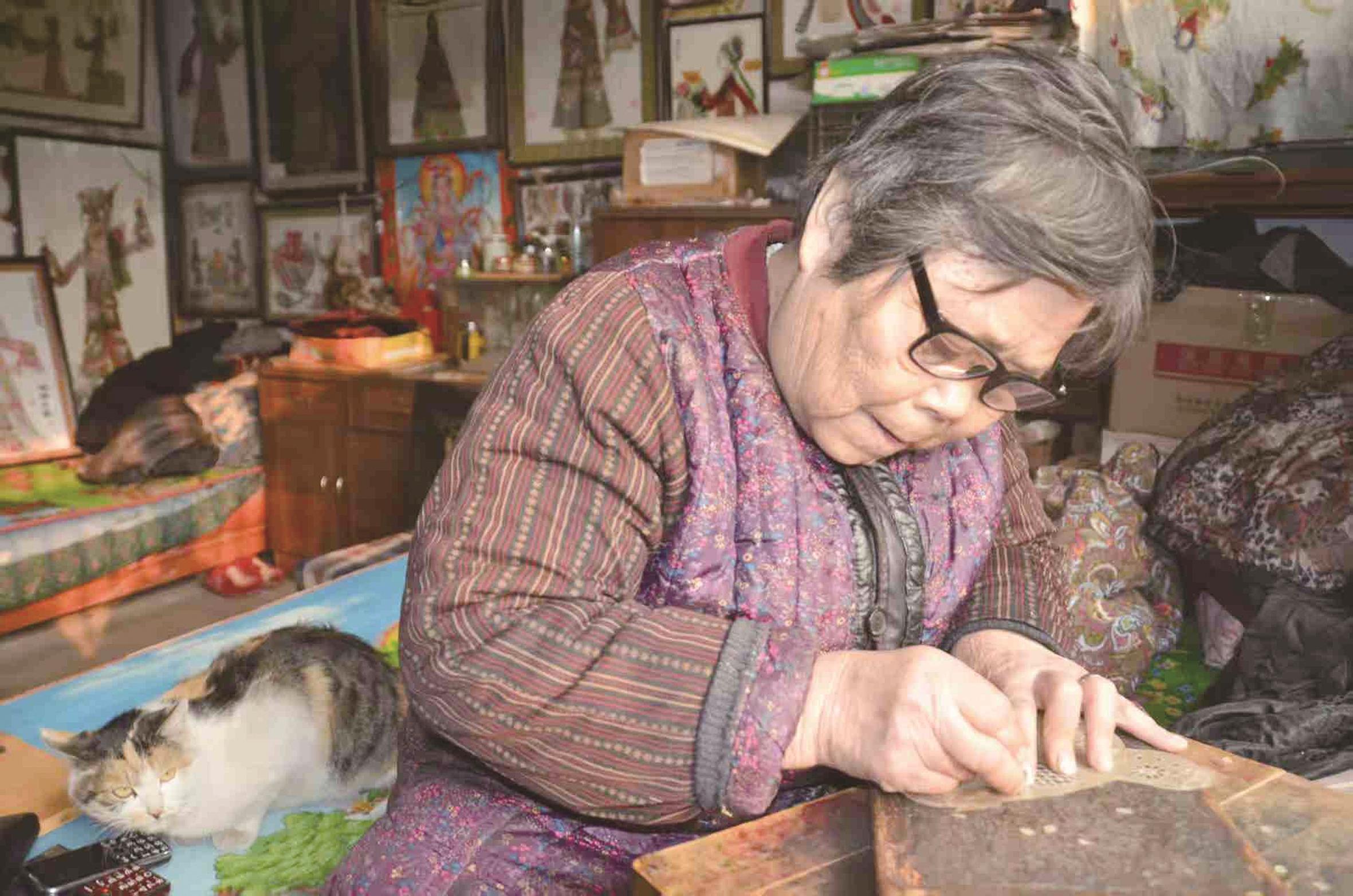 图为张雅君正在雕刻皮影。 国海涛 摄