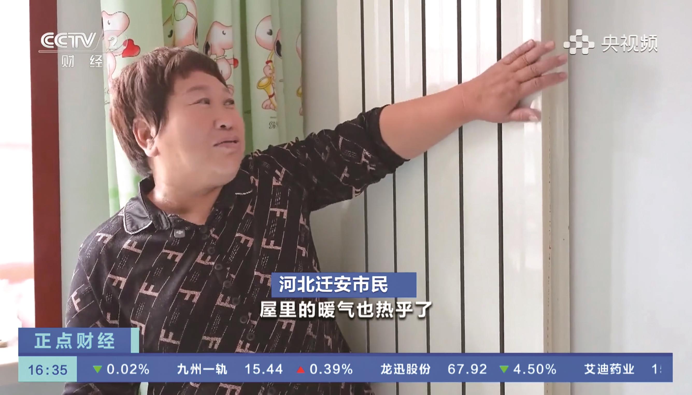 11月12日,央视财经频道《正点财经》播出《河北:应对气温骤降 多地提前供暖》,报道唐山为应对气温骤降,提前启动供暖,热力部门对2400多公里供热管网提前维护,升级优化供热大数据平台,保障市民温暖过冬。 中央广播电视总台