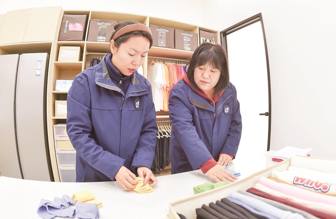 “家人们,又和大家见面啦!今天我们要给大家分享一个超实用的收纳小妙招——‘口袋叠衣法’。”在路南零工市场一间明亮整洁的工作室内,刘丹丹和贾玲玉正专注地录制着视频,准备发在视频号上。