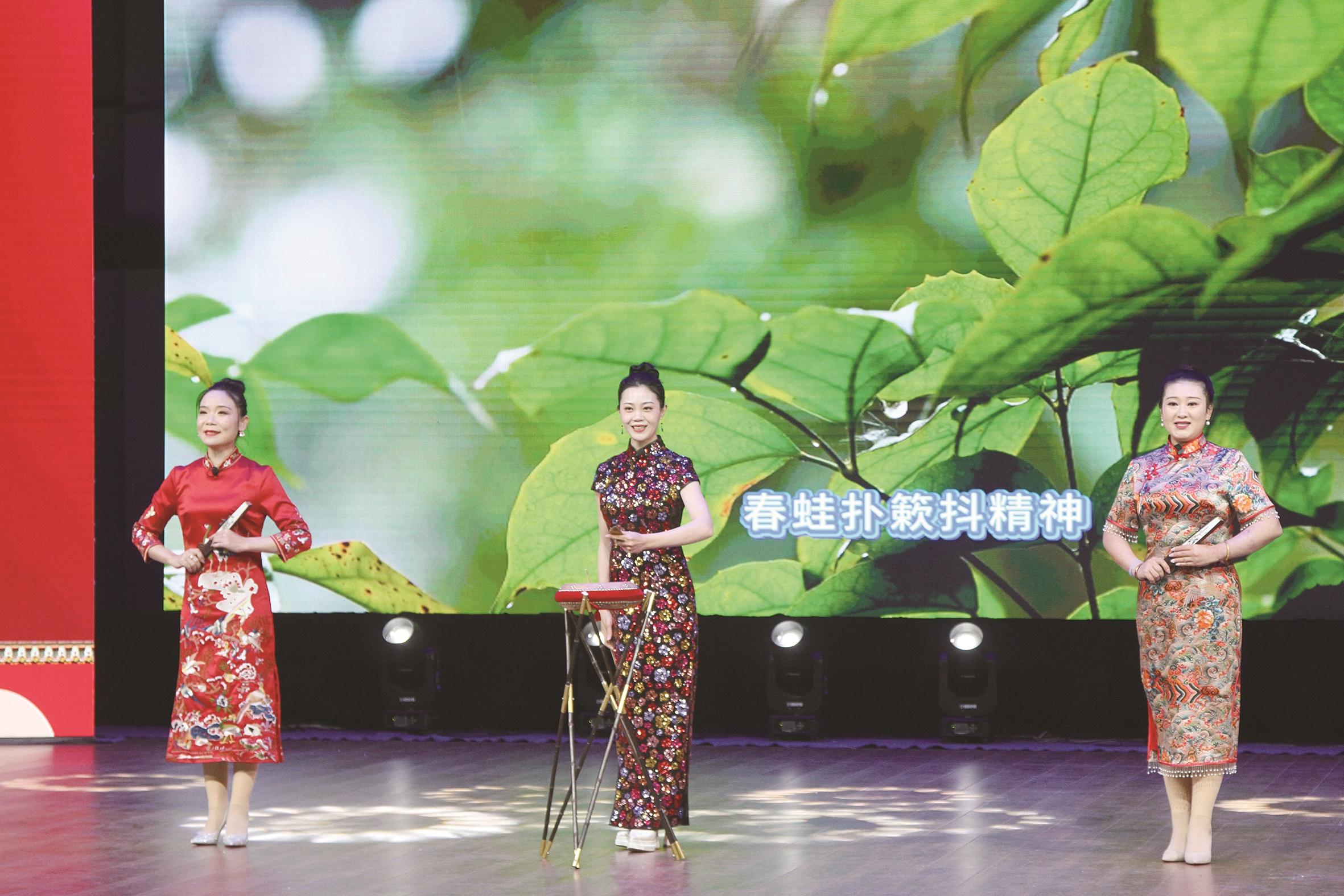 在河北省第六届乐亭大鼓书会演出中,来自京津冀地区的乐亭大鼓名家与非遗传承人登台献艺,倾情演绎《二十四春》《认亲》等曲目,婉转唱腔与精湛表演赢得现场观众阵阵掌声;鼓曲展演由京津冀名家演出优秀鼓曲节目,包含京东大鼓、西河大鼓、天津快板等曲艺形式;在分会场表演中,乐亭大鼓非遗传承人、优秀爱好者深入基层开展惠民演出,将传统文化送到群众家门口。