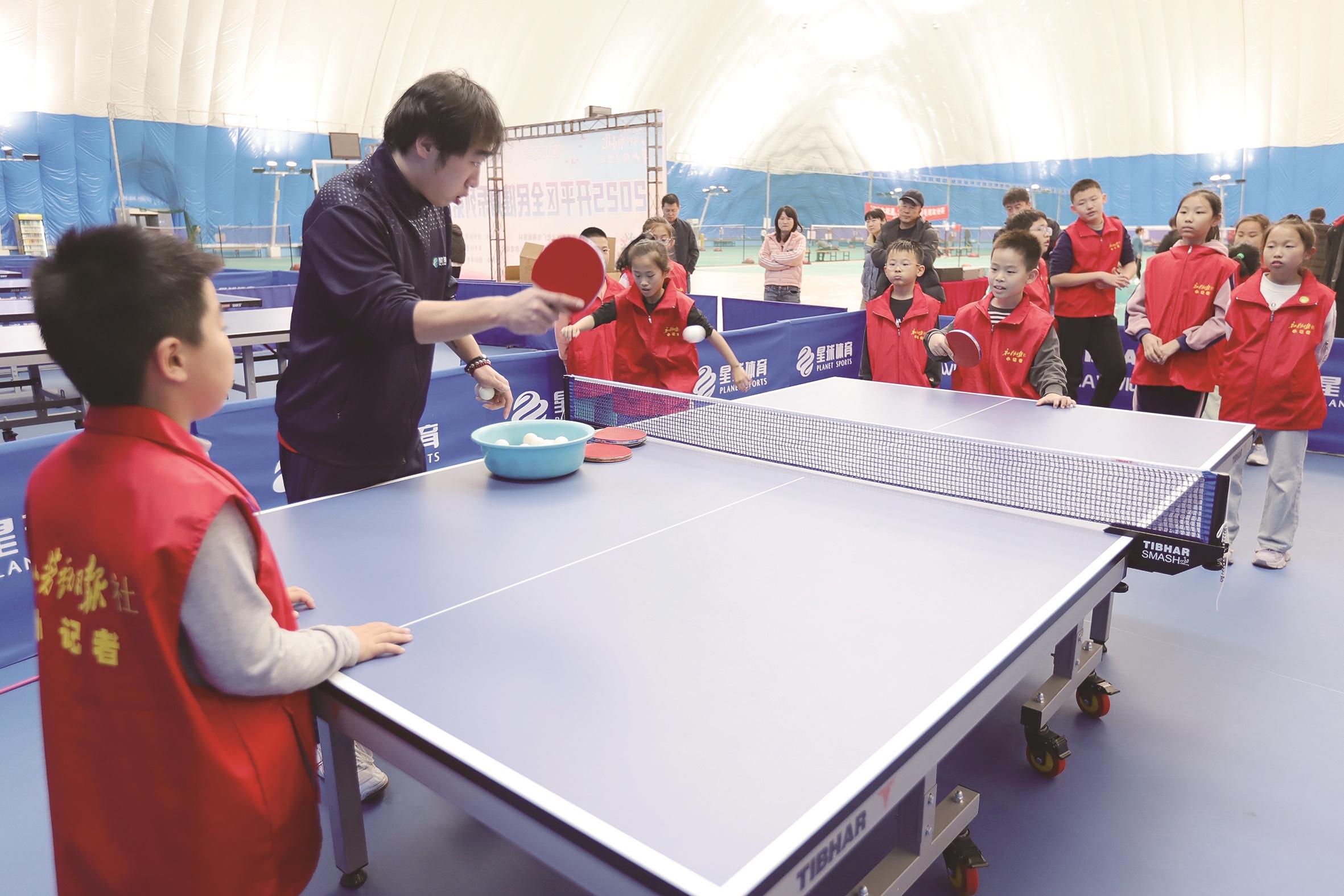 本报讯 (记者赵欣)11月23日,唐山劳动日报社小记者走进唐山花海星球体育中心,在专业教练的带领下,完成了一场集热身锻炼与乒乓球启蒙于一体的体育实践活动,在运动中挥洒汗水,在体验中收获成长。