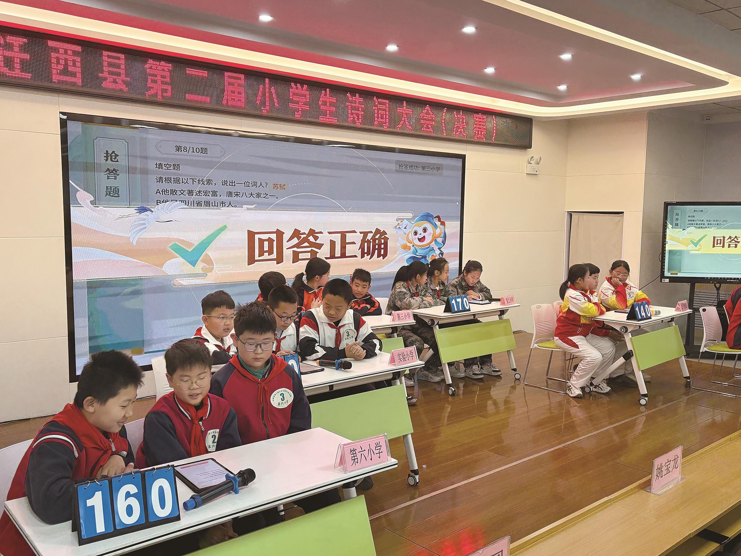 本报讯 (记者闫倩 通讯员赵志鹏、时建富)近日,迁西县实验小学报告厅内诗声朗朗、掌声雷动,第二届小学生诗词大赛决赛在此精彩上演。历经校级初赛、县级复赛层层筛选,6支优秀代表队脱颖而出,以诗为媒同台竞技。