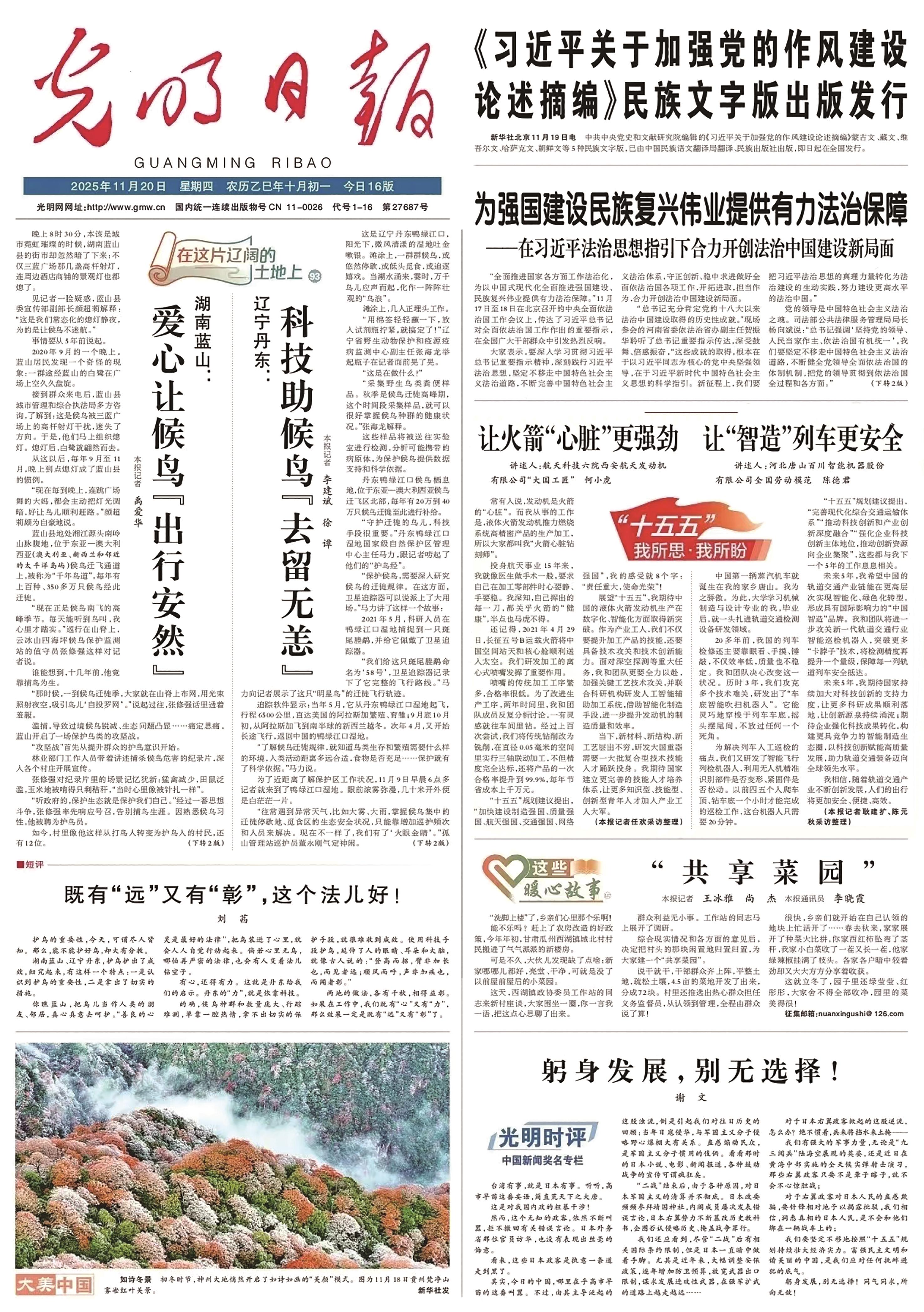 11月20日,《光明日报》1版刊发题为《让“智造”列车更安全》消息,介绍全国劳模陈德君与团队研发智能机器人,推动列车检修从“眼看、手摸、锤敲”迈向智能化时代。