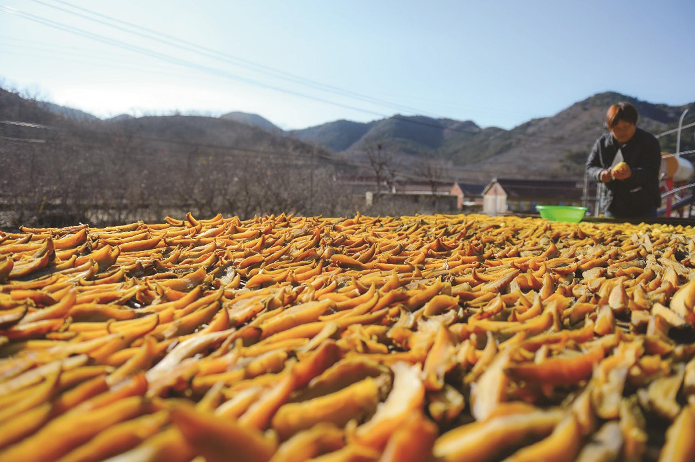 制作红薯干的传统不仅承载着村民们的乡愁记忆,也成为带动村民增收致富的重要途径。灰岭子村红薯干名声在外,吸引了不少城里人驱车前来抢购,乡亲们坐在家中就能把钱挣到手。同时,红薯干也搭上了电商、微商的快车,成为热销食品,在网购平台上也赢得了不少回头客。“我们的红薯干最远卖到了深圳,客户吃过后都赞不绝口。”王艳国自豪地说。