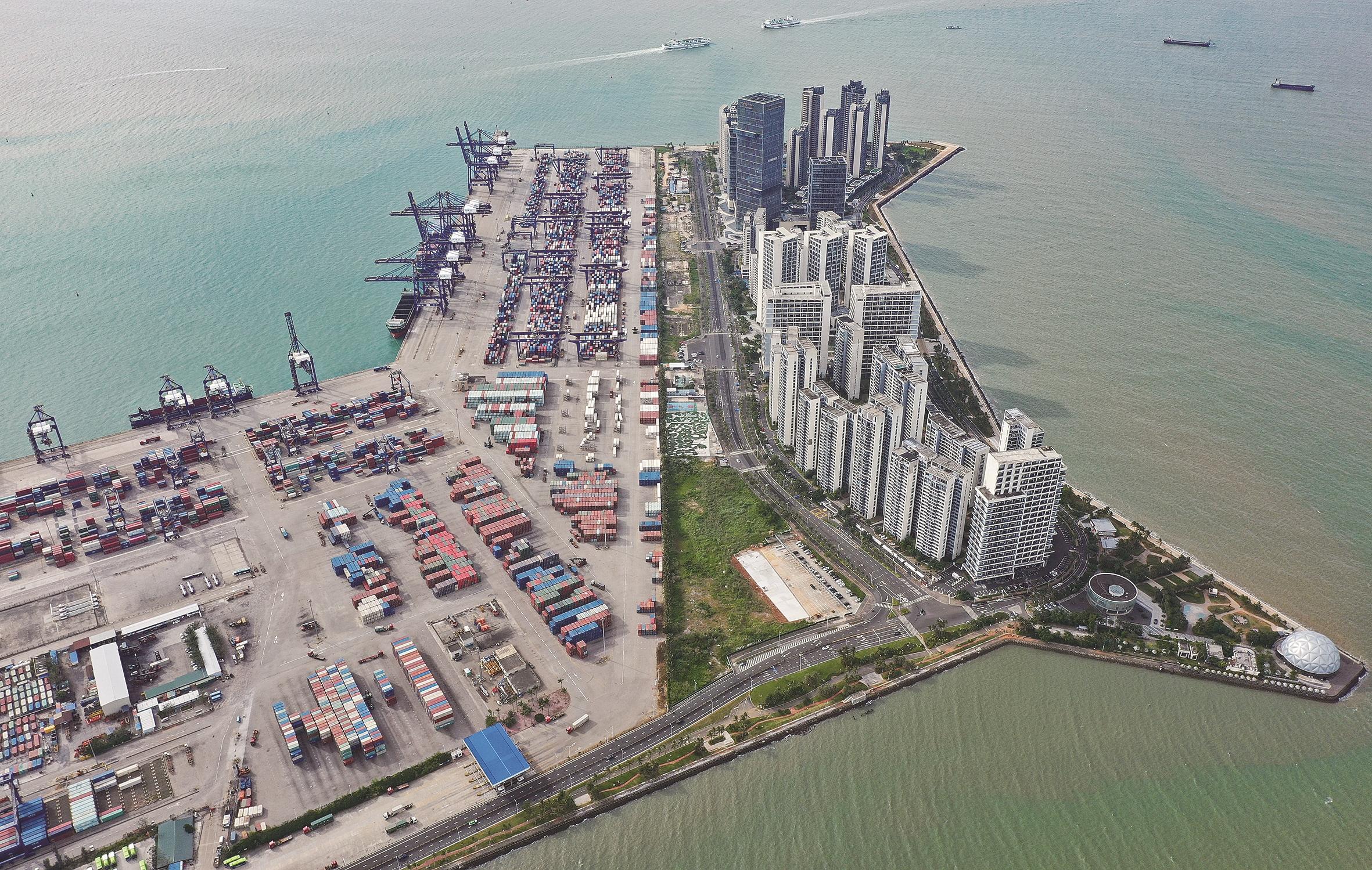 11月27日拍摄的海口港,是海南自贸港10个“二线口岸”之一(无人机照片)。