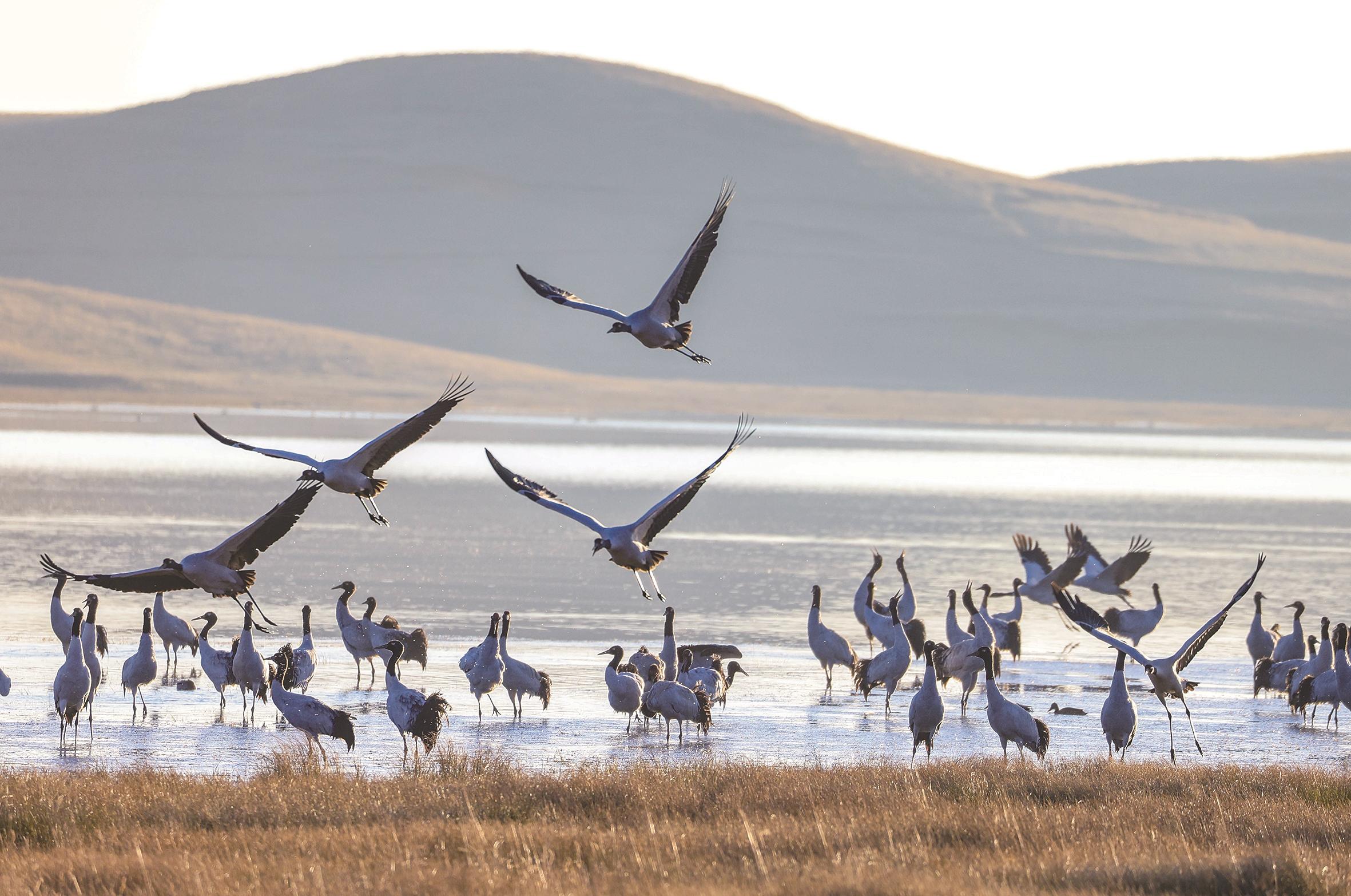 云南省昭通市大山包黑颈鹤国家级自然保护区是中国黑颈鹤主要的越冬栖息地之一。据悉,目前已有千余只黑颈鹤飞抵大山包越冬。