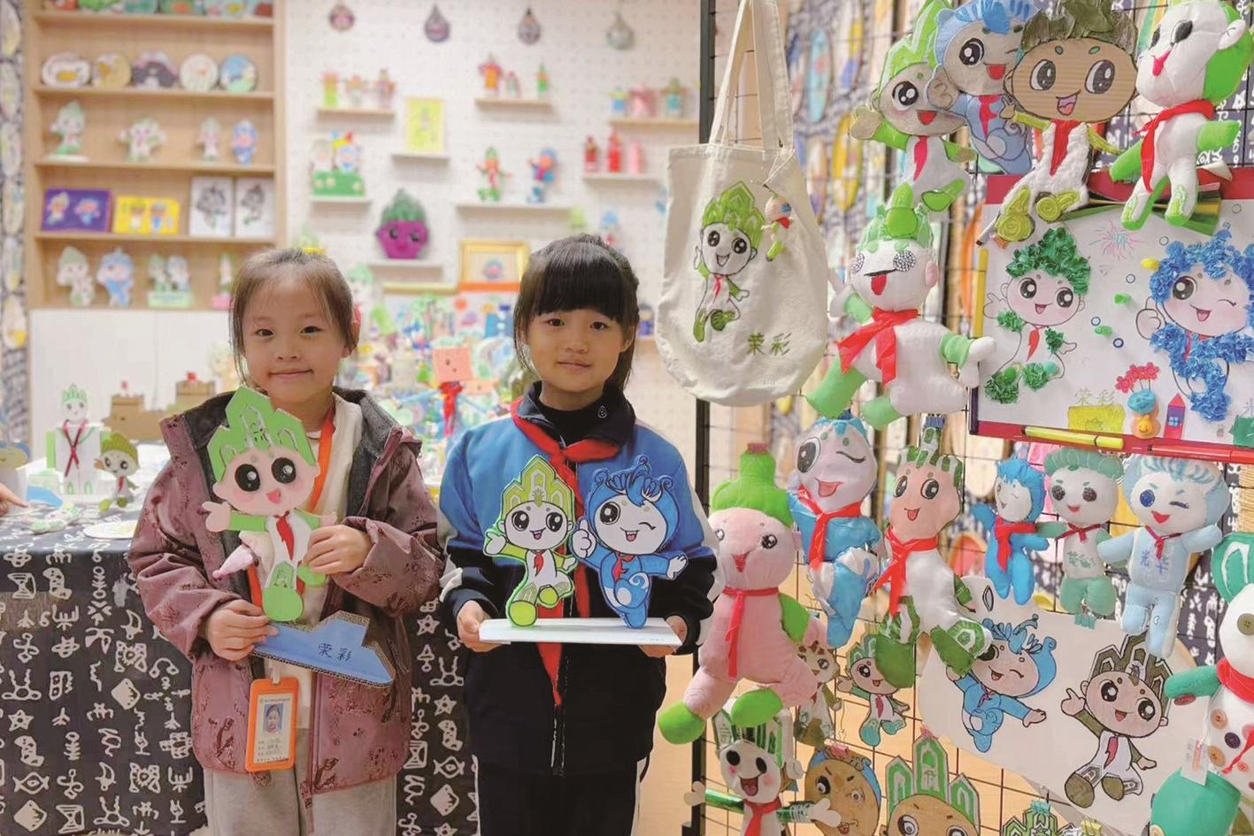图为学生展示校园环保吉祥物创意作品。 荣华道小学 供图