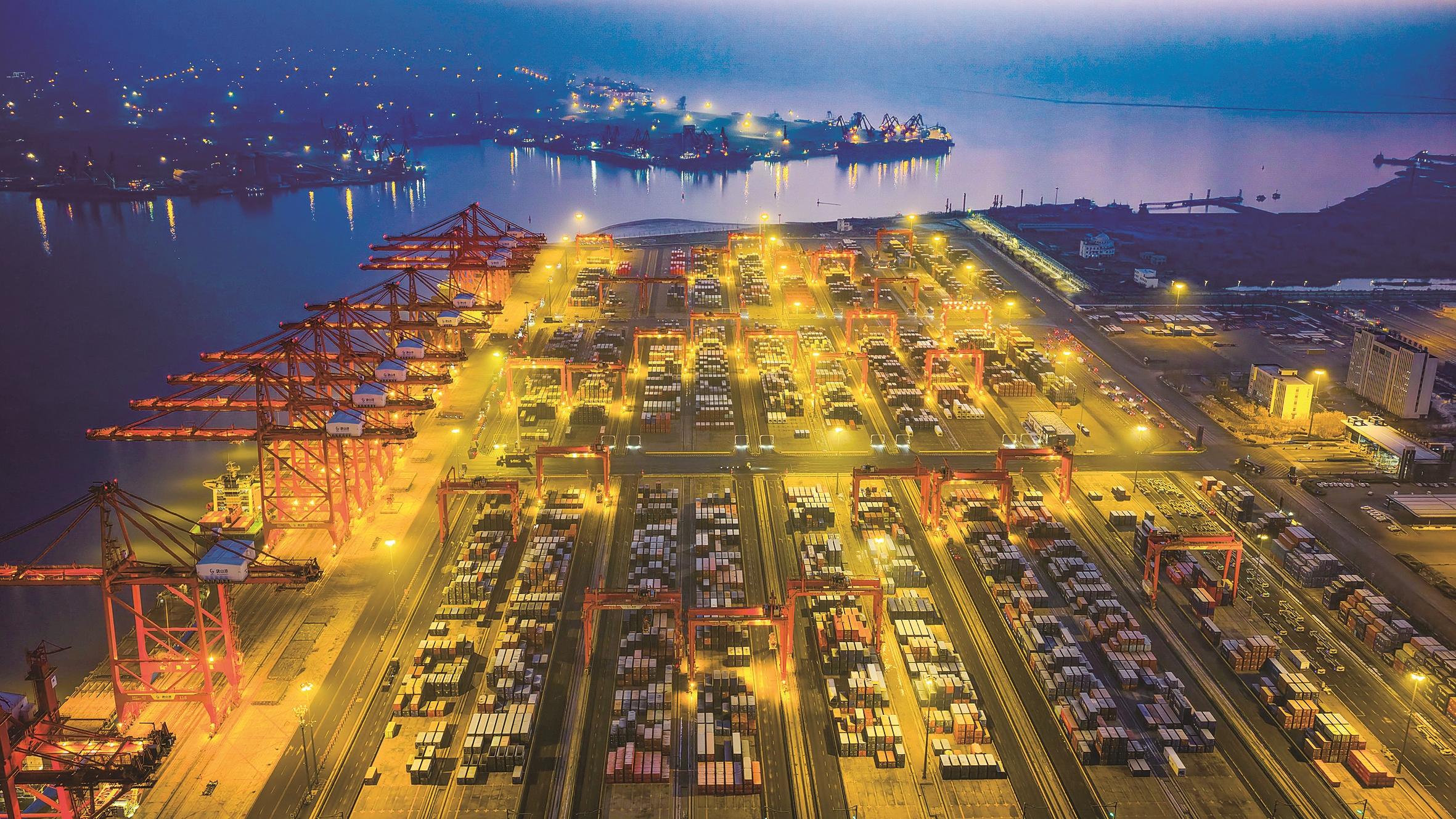 12月15日拍摄的河北省唐山港京唐港区集装箱码头堆场(无人机照片)。