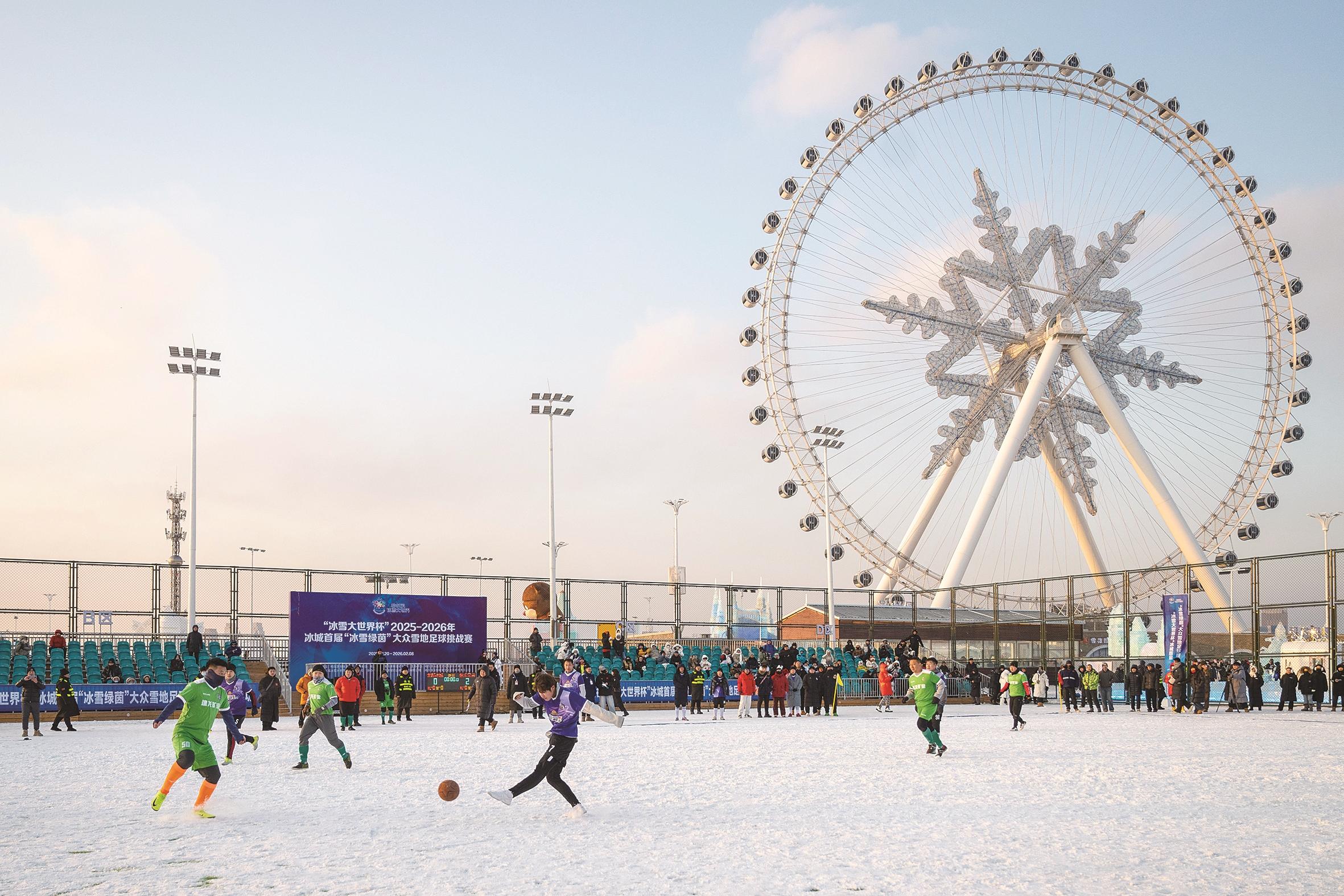 当日,哈尔滨市“冰超”系列冰雪赛事启动仪式暨“冰雪大世界杯”2025-2026年冰城首届“冰雪绿茵”大众雪地足球挑战赛开幕式在哈尔滨冰雪大世界梦想大舞台举行。