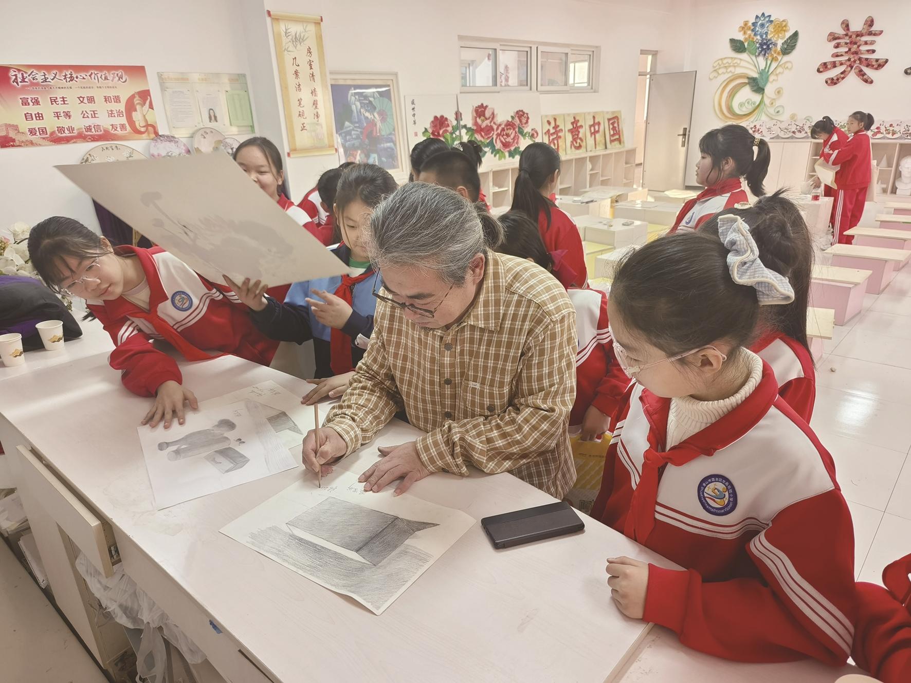 活动中,各协会志愿者各展所长,将“唐山之新、唐山之美、唐山之好”融入教学:美术家协会的老师们用五彩画笔描绘家乡画卷;作家协会的老师们以动人文字颂扬文明书卷;音乐家协会的老师们将赞美唱入时代强音;书法家协会的老师们通过笔墨丹青抒写情怀;曲艺家协会的老师们则致力于传承非遗技艺;摄影家协会的老师们用镜头捕捉美丽风光。志愿者们分别走进了世嘉实验小学、裕华道二小、外国语实验小学等十余所学校,将艺术的种子播撒在孩子们的心田。