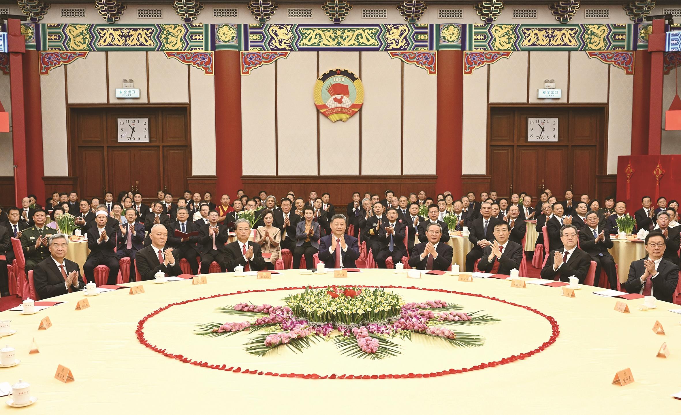 十二月三十一日,全国政协在北京举行新年茶话会。党和国家领导人习近平、李强、赵乐际、王沪宁、蔡奇、丁薛祥、李希、韩正出席茶话会并观看演出。 新华社记者 谢环驰 摄