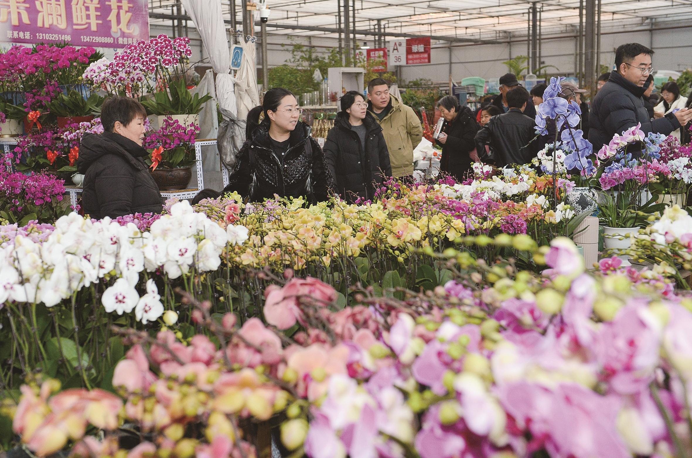 新年来临,我市花卉市场一派热闹景象,商户们抢抓节日商机,备足货源、优化陈列,各品种花卉琳琅满目,前来选购鲜花的市民络绎不绝,彰显出我市节日消费市场的旺盛活力。图为1月1日,路北区一处花卉市场人头攒动,新年的喜庆氛围扑面而来。