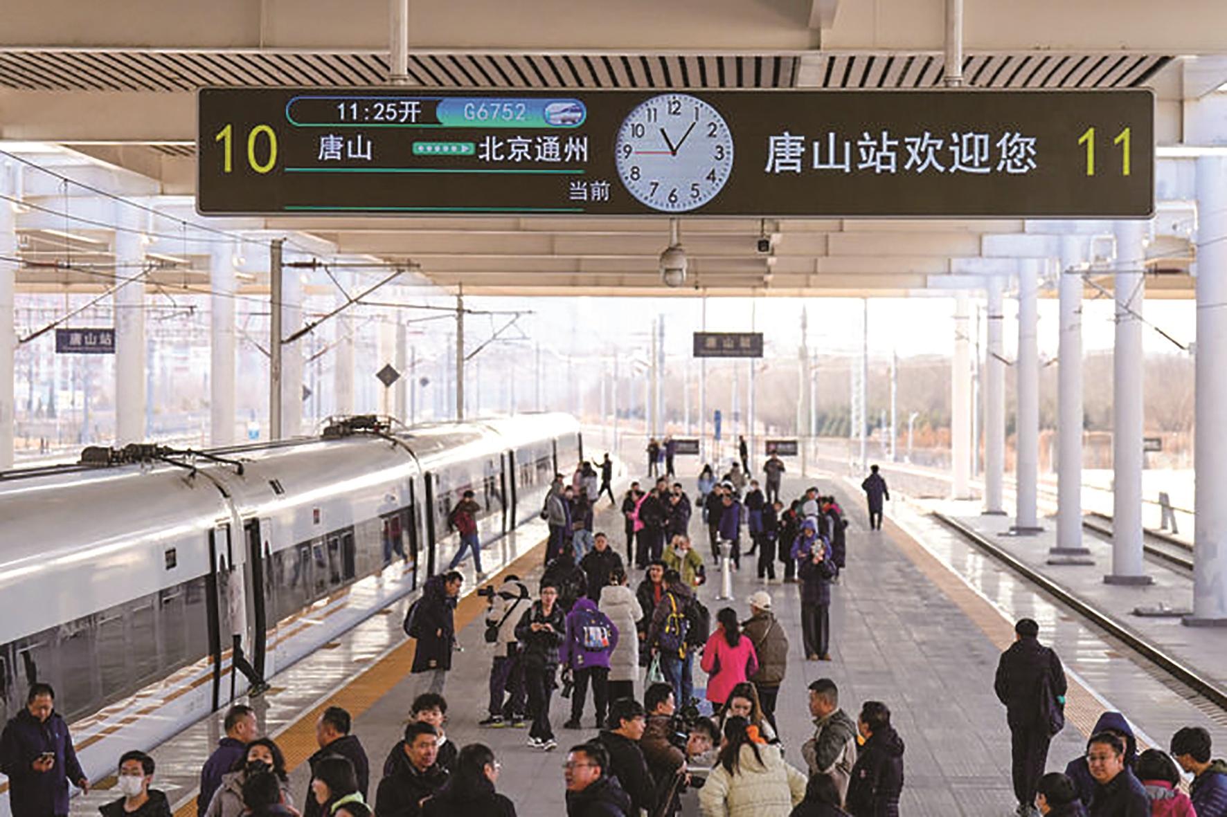 上午10点,开往唐山站的G6751次列车缓缓启动。这趟首班列车在经停燕郊站和宝坻站后,于11点整到达河北唐山。