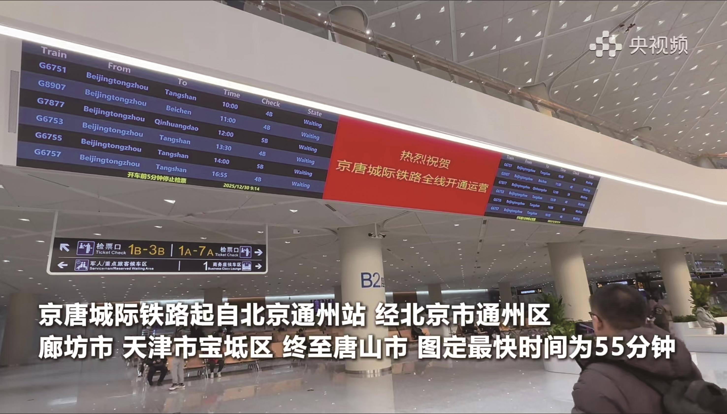 2025年12月30日,历经6年多建设,位于北京城市副中心综合交通枢纽内的北京通州站正式投入运营。同日,京唐城际铁路全线开通。早在2022年底,京唐城际铁路北京燕郊至唐山段已开通运营。