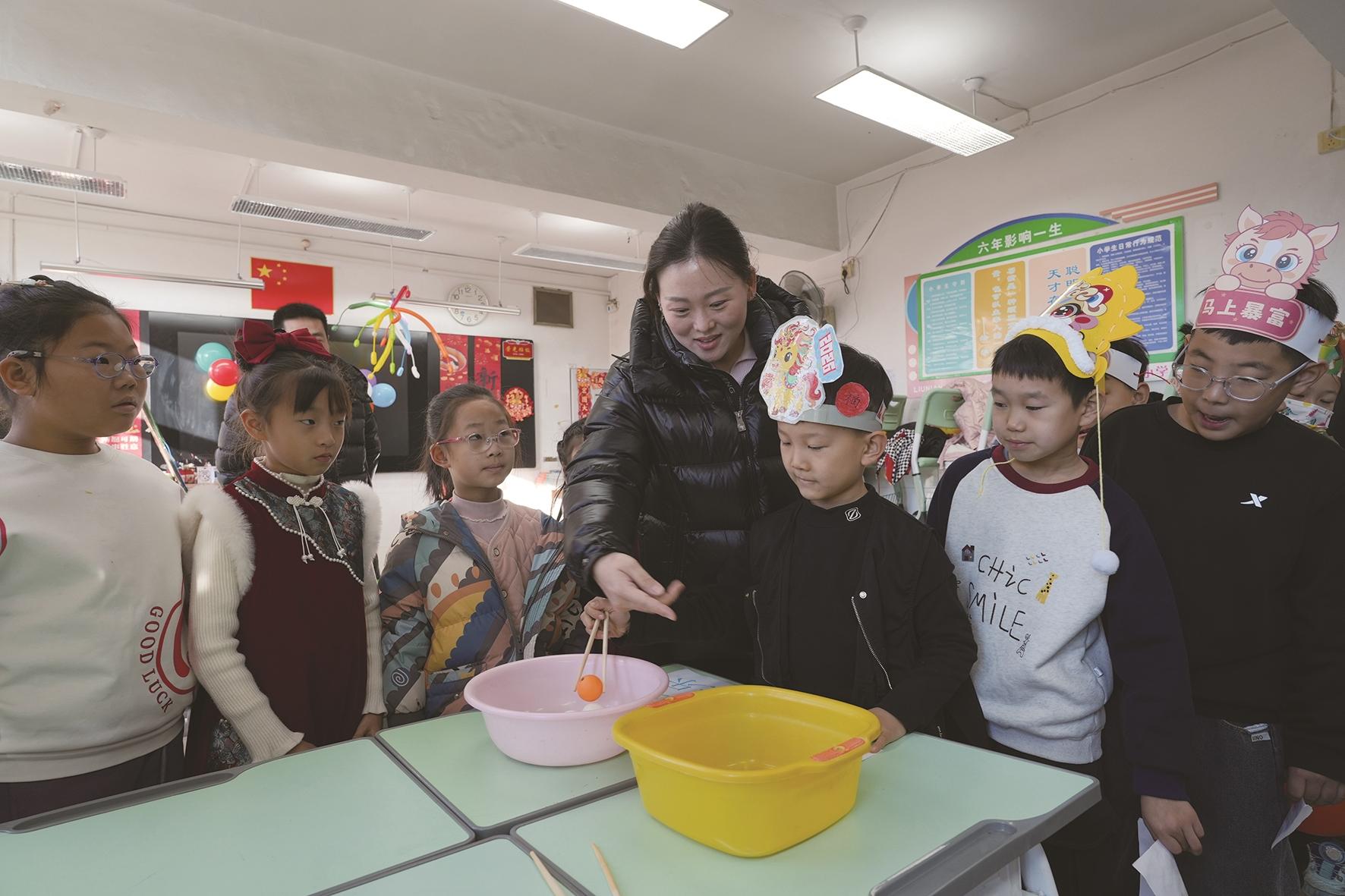 2025年最后一天,荣华道小学开展迎新年游乐活动。学生们头戴自制特色帽子,手持贺卡相互问候,玩游戏,在欢歌笑语中辞旧迎新。